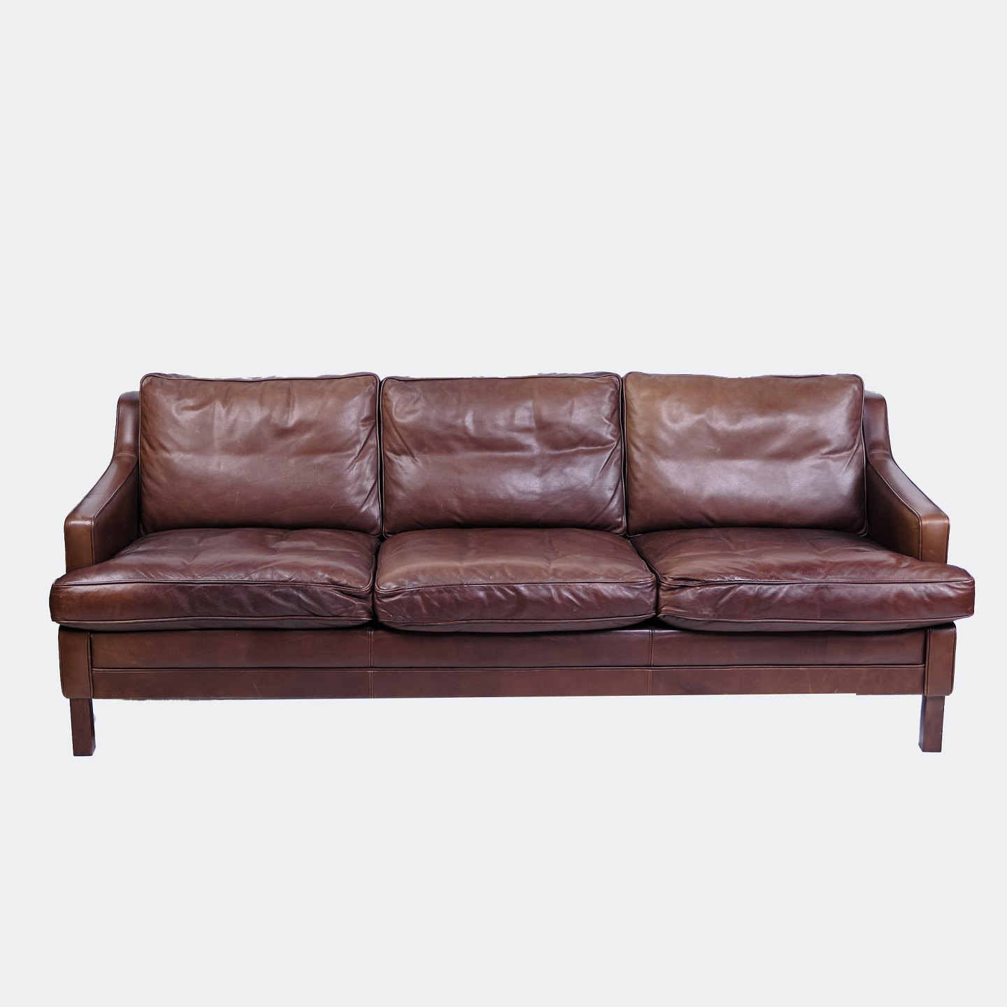 Dansk 3-personers sofa i brunt læder fra 1970’erne. Klassisk dansk design.