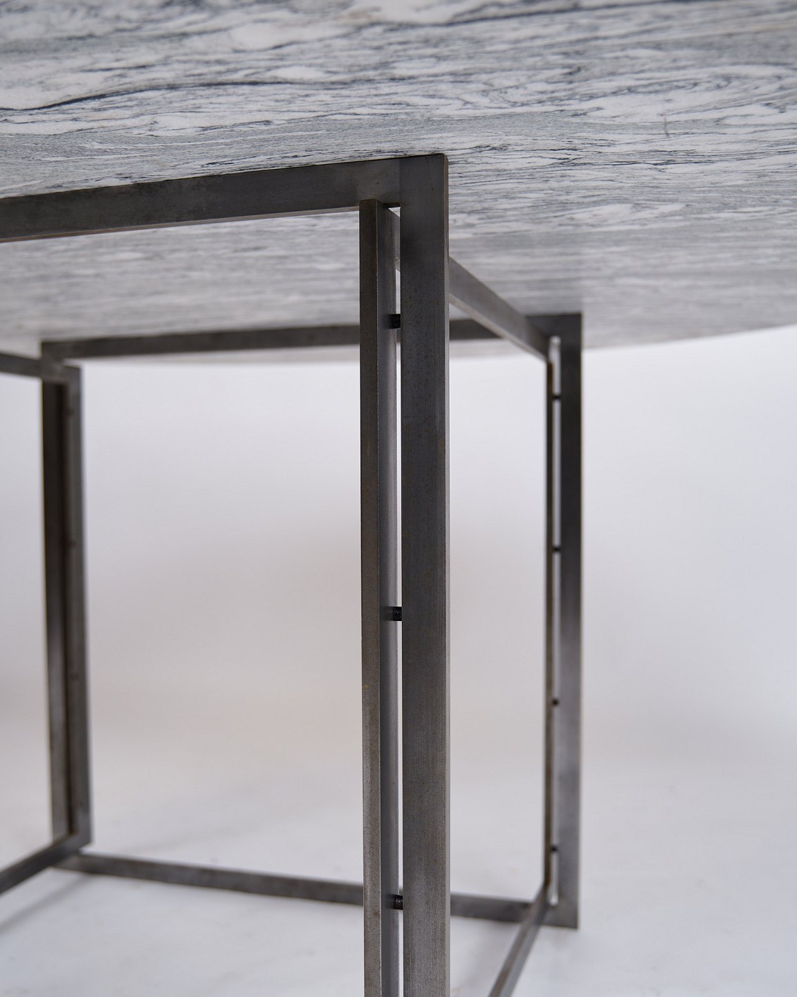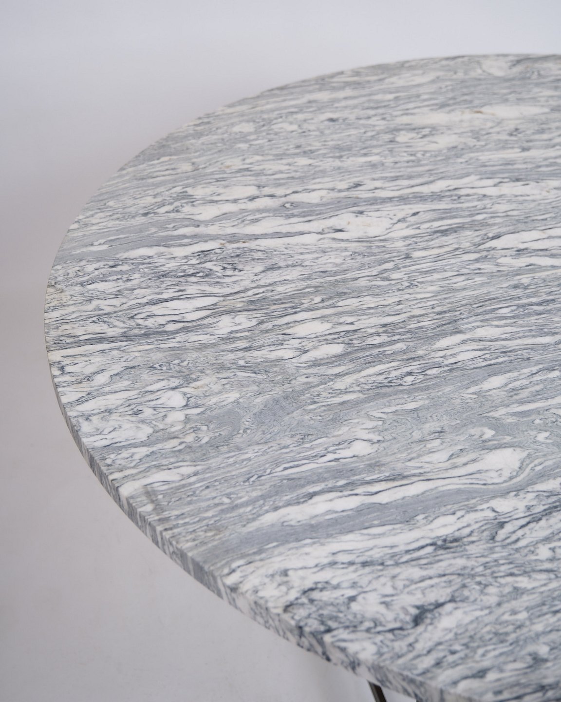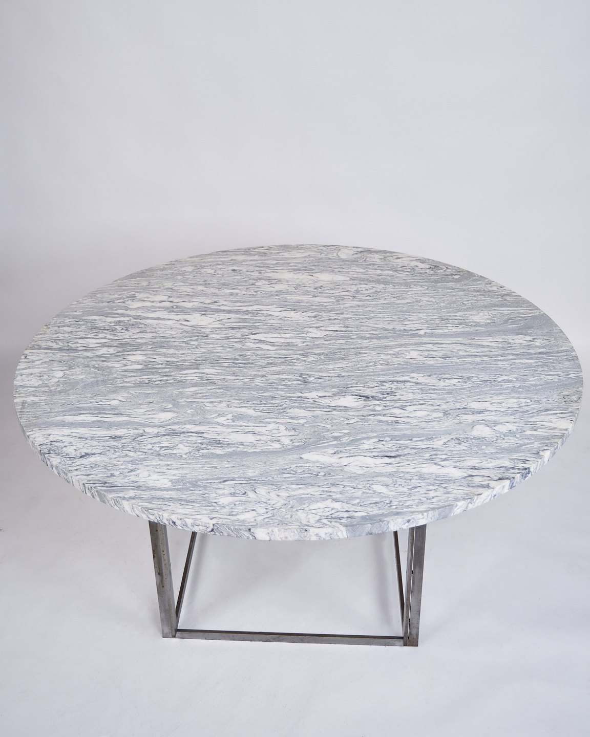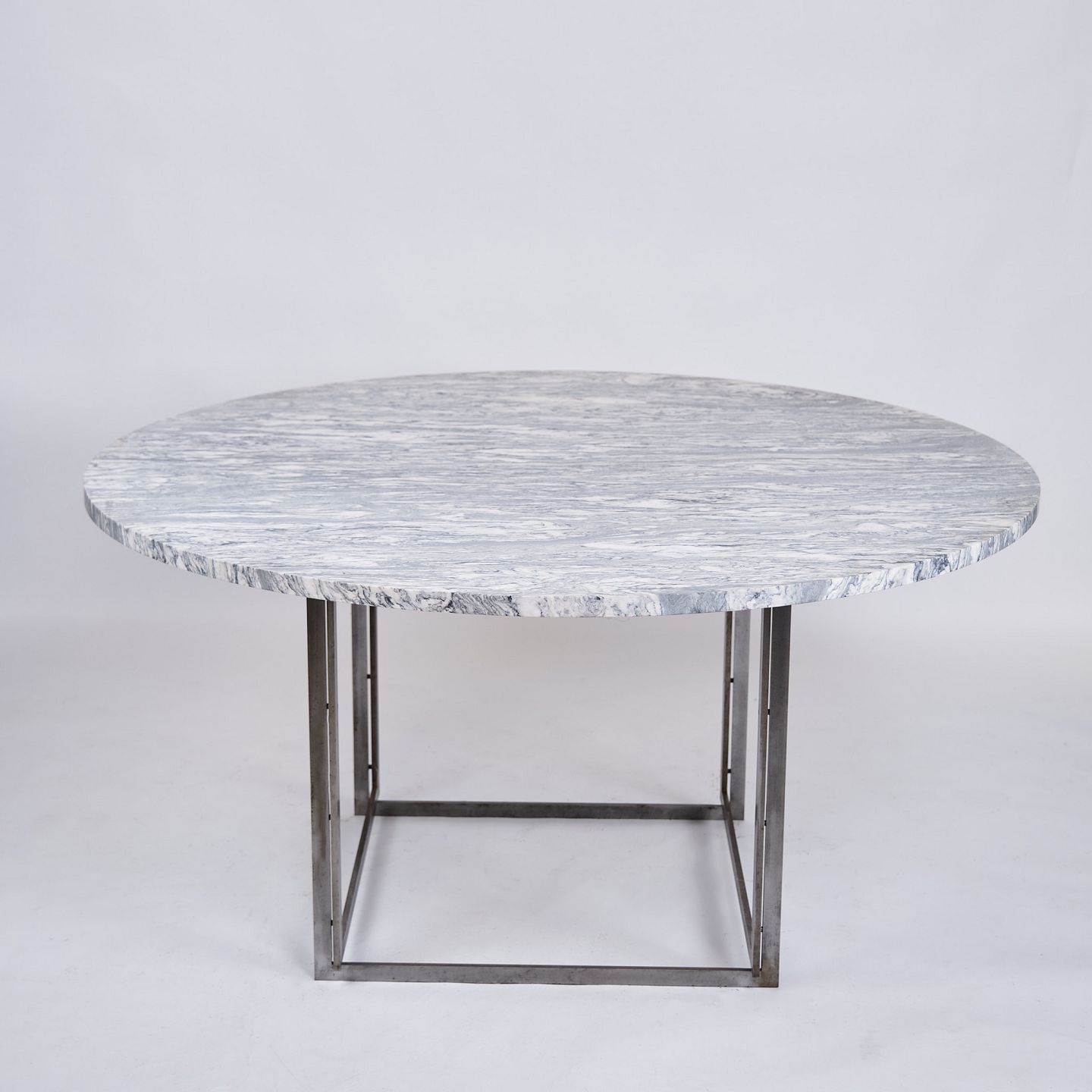 Sjældent spisebord, model PK54, designet af Poul Kjærholm og produceret af E. Kold Christensen i 1960’erne. Bordet er udført med en massiv rund cipollini-marmorplade, båret af et stålstel, karakteristisk for Kjærholms minimalistiske formsprog.