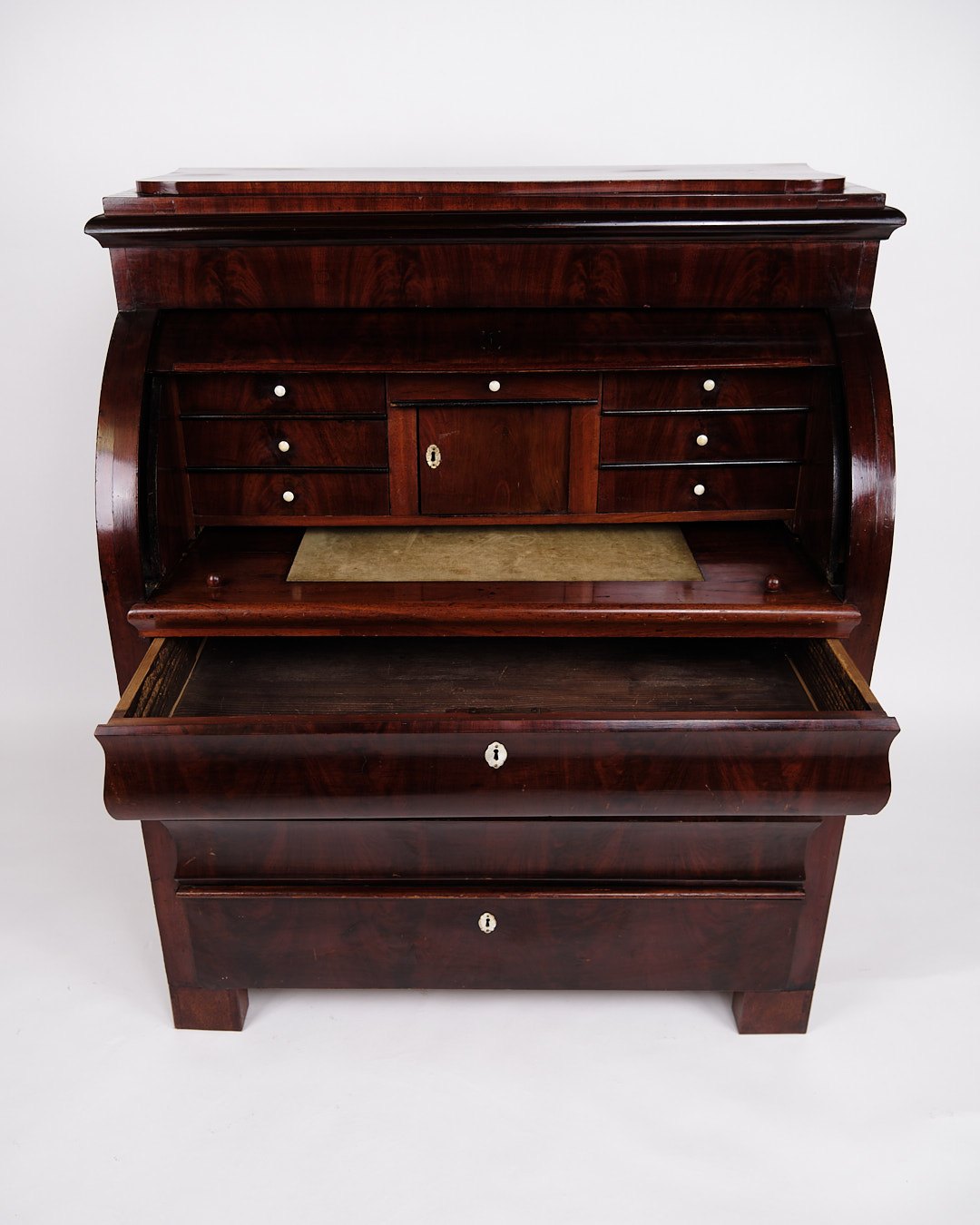 Antikt chatol i håndpoleret mahogni fra 1860’erne. Med perlemorsbeslag og benknopper.