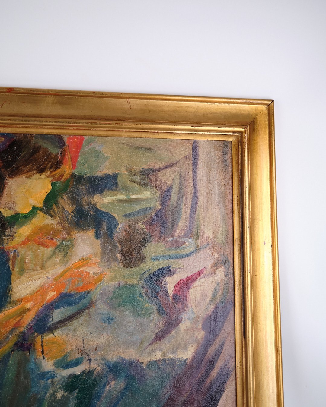 Abstrakt oliemaleri af kvinde fra 1930’erne. Olie på lærred med guldramme.