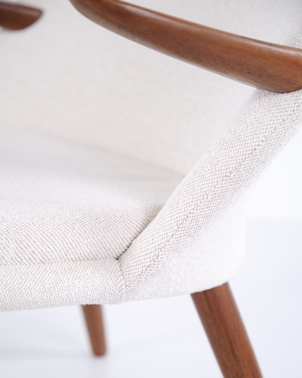 Kurt Olsen armchair from Glostrup Møbelfabrik. Teak with light fabric, 1960s.