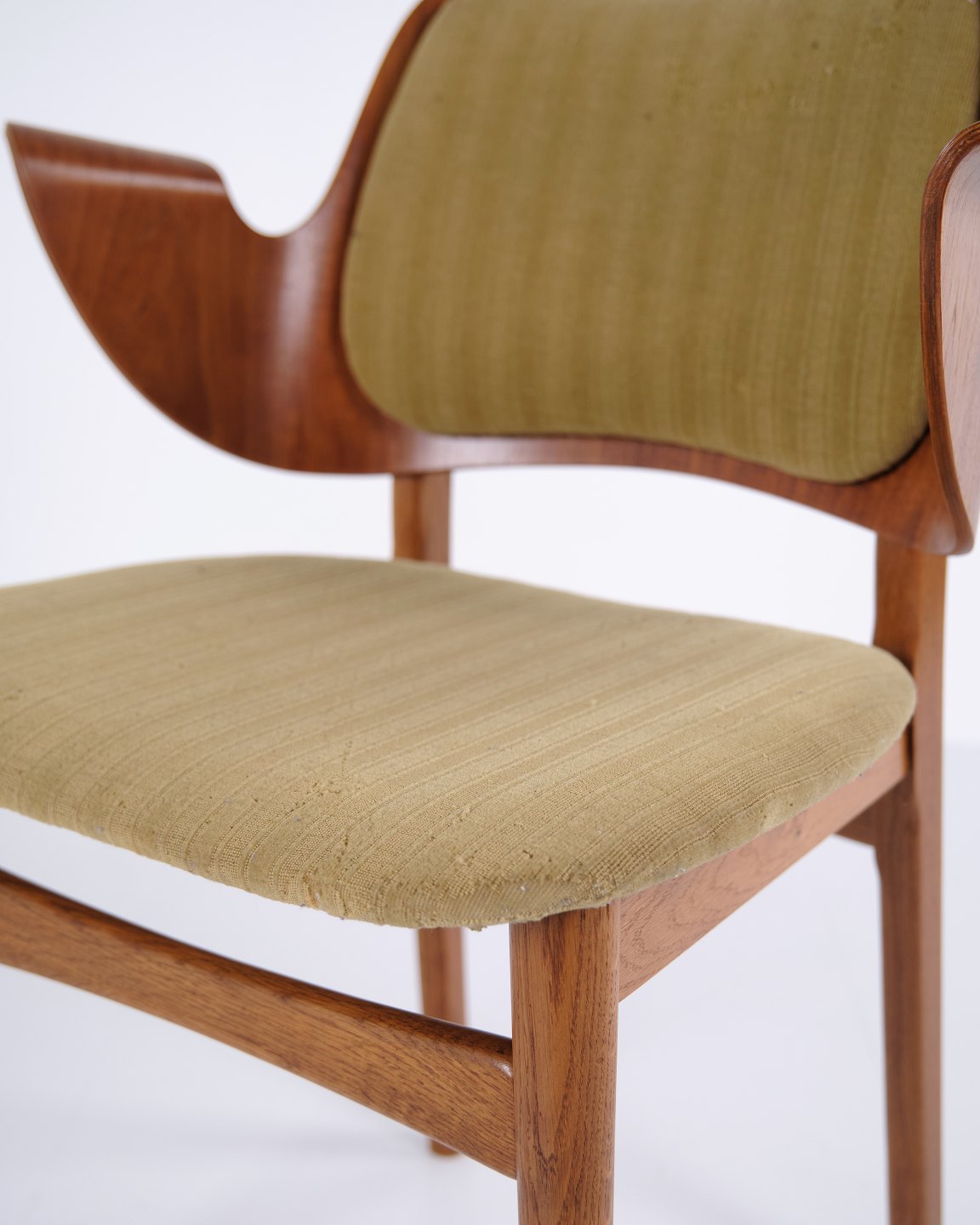 Hans Olsen armchair, model 107, from the 1960s. Oak and teak with original upholstery. Classic Danish design.