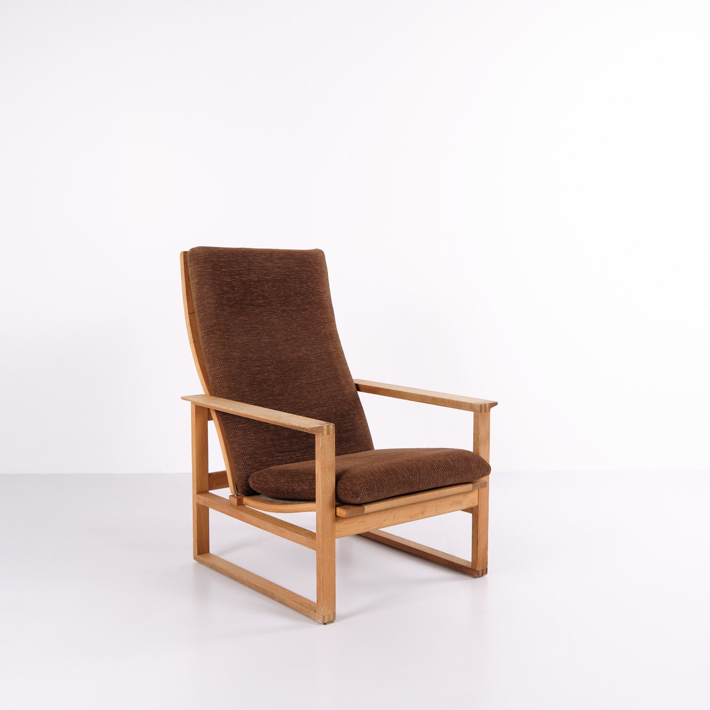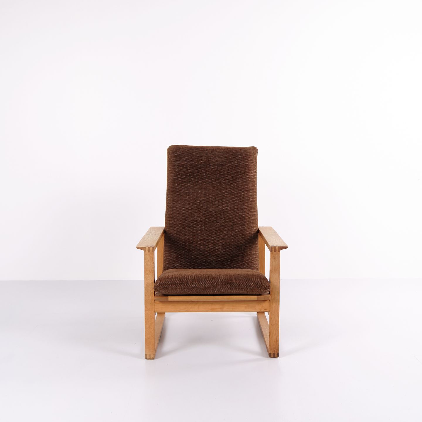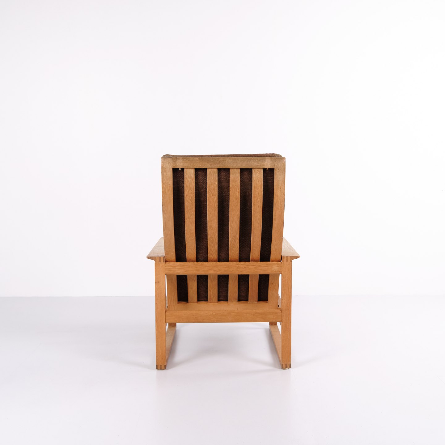 Børge Mogensen sled chair BM2254 from Fredericia Stolefabrik. Oak with brown cushions.