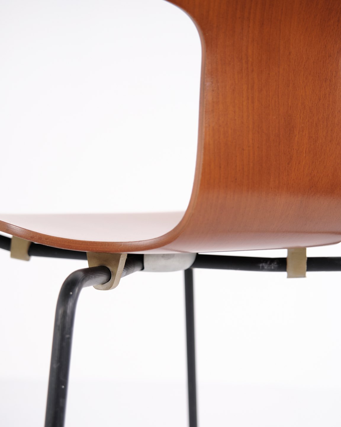 Set of six dining chairs, model 3103 – also known as the T-Chair or Hammer Chair – by Fritz Hansen. The chairs have been professionally treated and restored in our workshop and are in very good condition. Fitted with original Fritz Hansen and Danish Control labels.