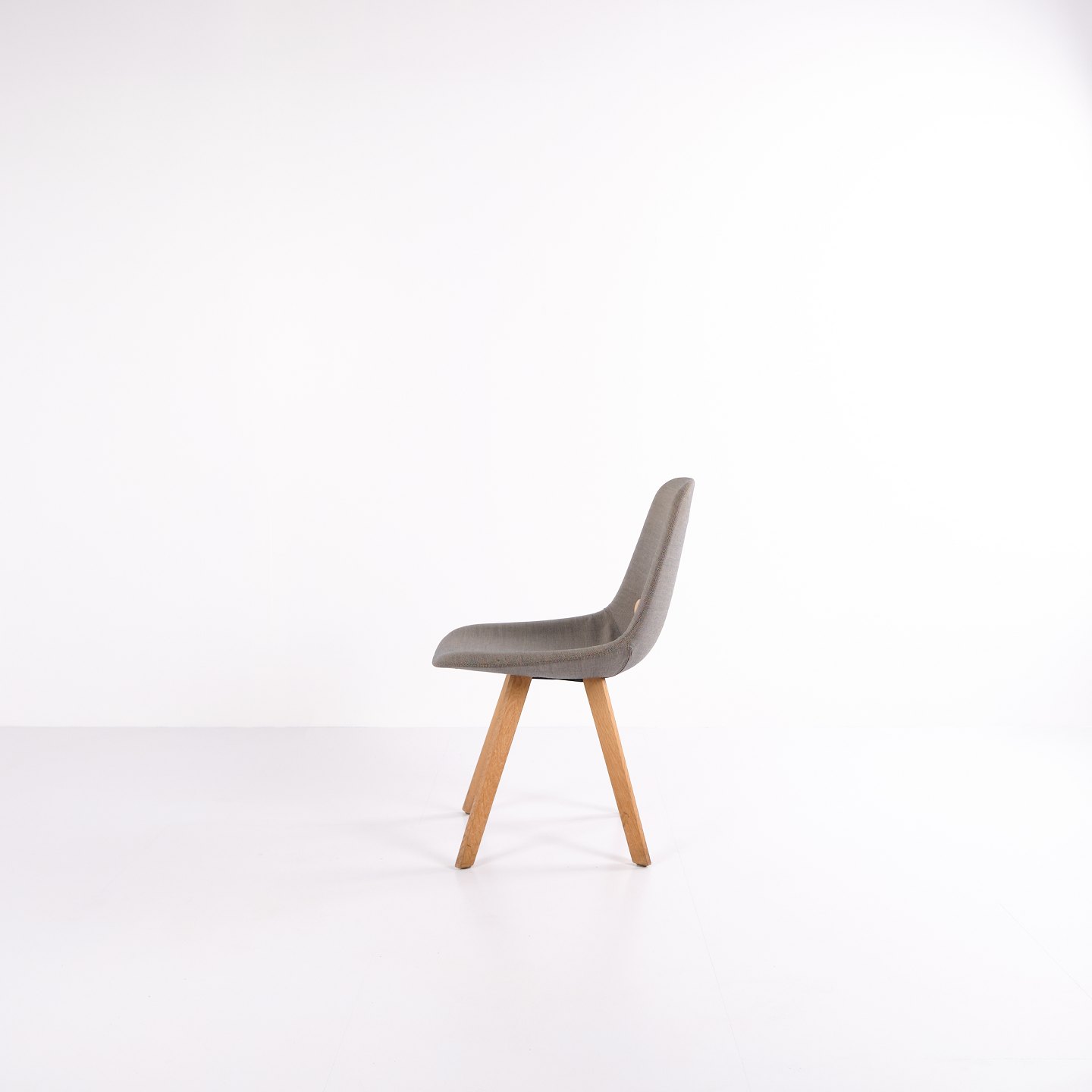 Eyes Wood chair by Erik Jørgensen with mid-grey upholstery and solid wood legs. A modern dining chair offering good seating comfort and high-quality materials.