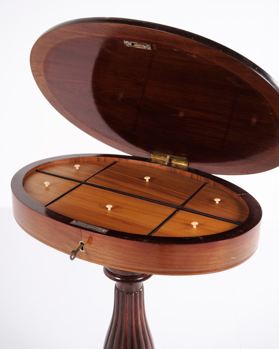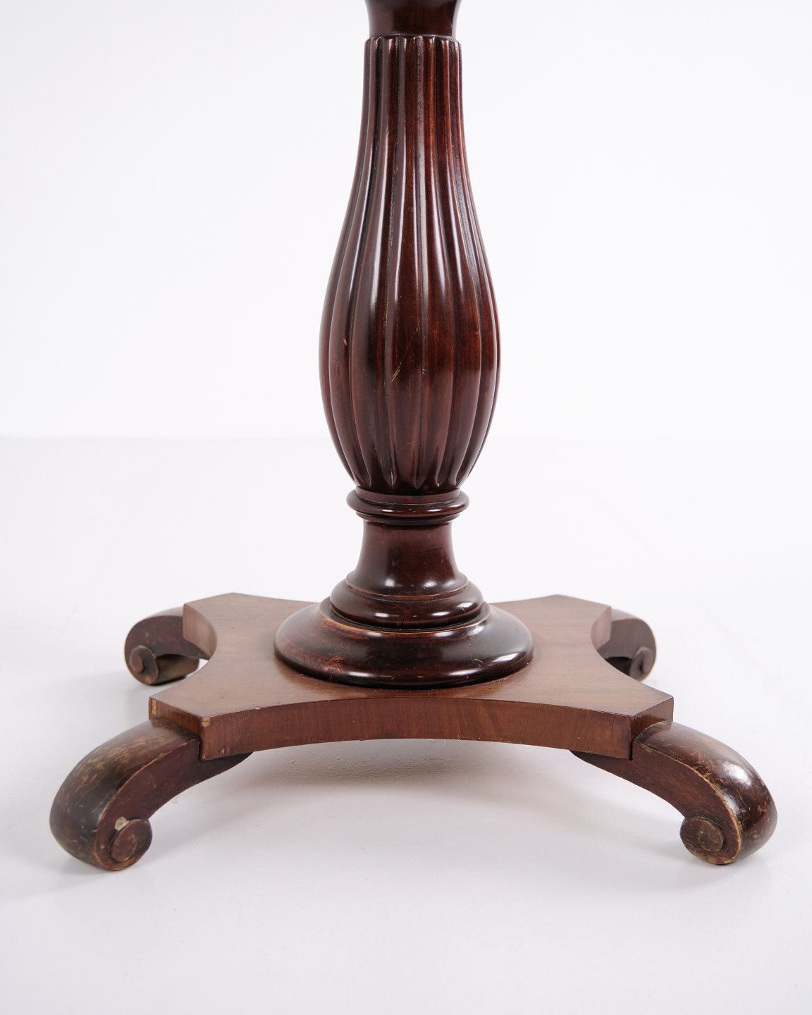 Sidebord eller smykkebord fra ca. 1890, udført i mahogni og håndpoleret for en dyb, varm glans. Klassisk antikt møbel med fine detaljer, velegnet som dekorativt bord i entré, stue eller soveværelse.