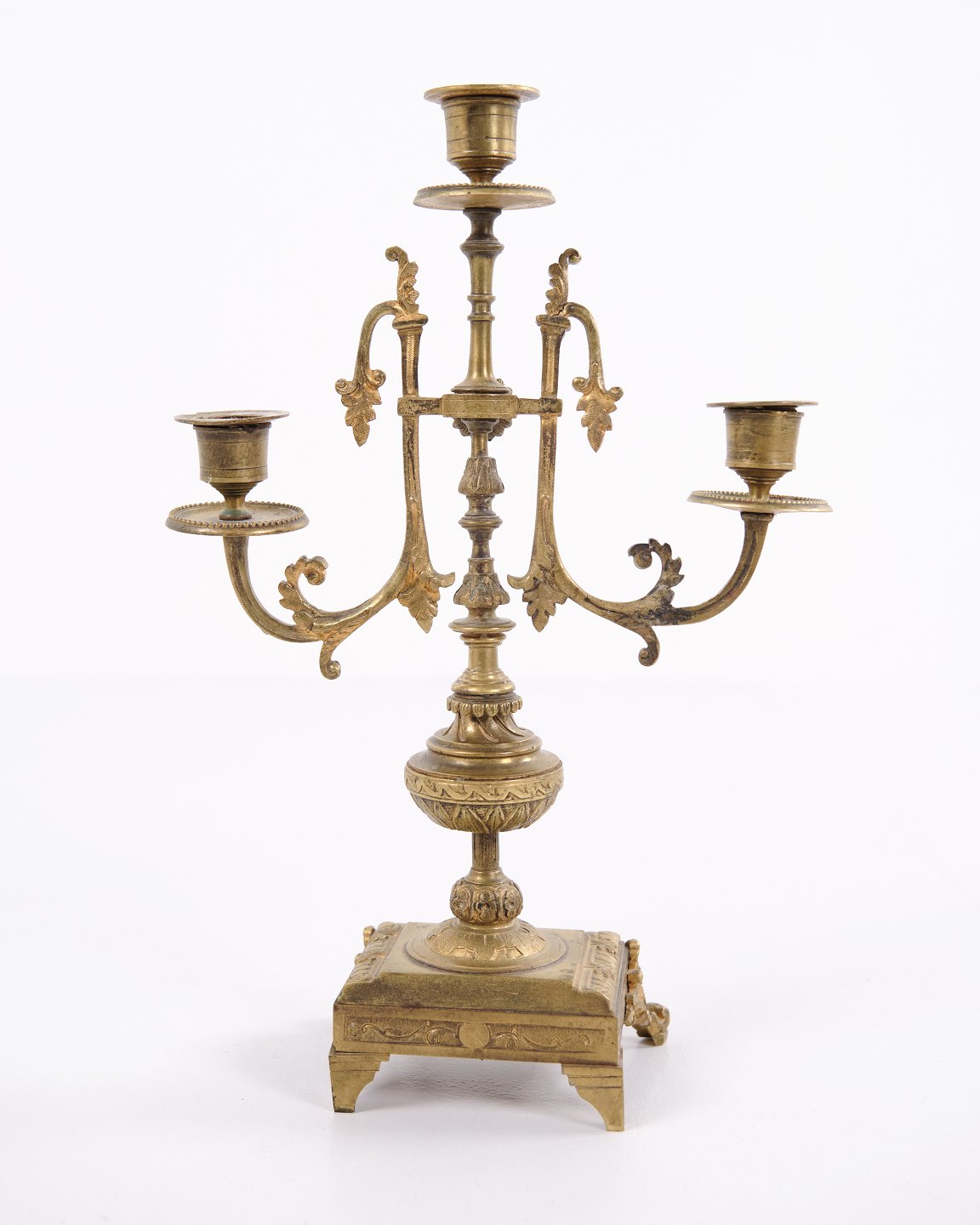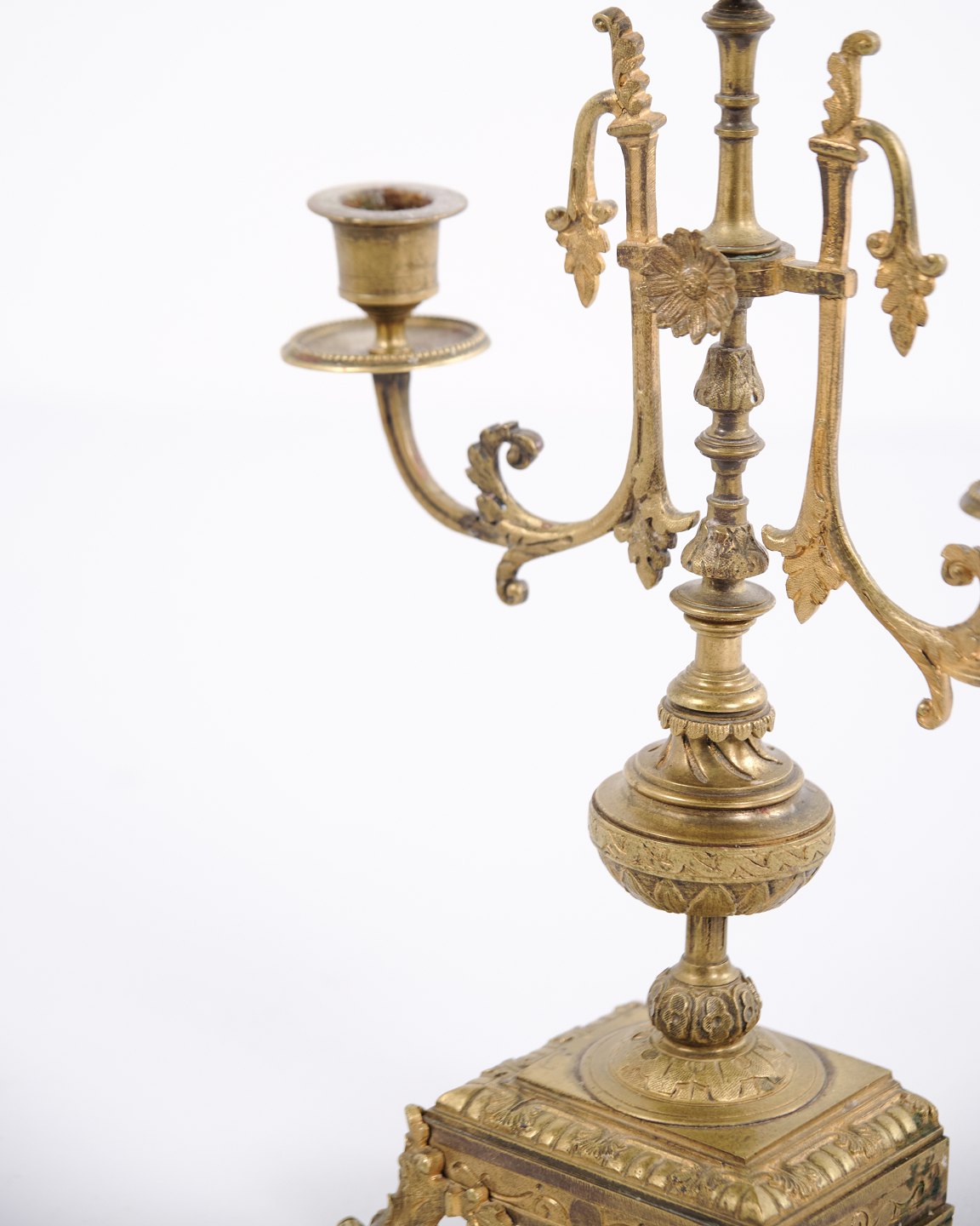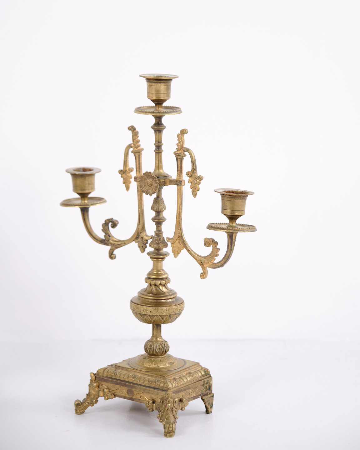 Sæt franske bronze stager fra 1890’erne. Trearmede lysestager med rige udsmykninger og fine detaljer.