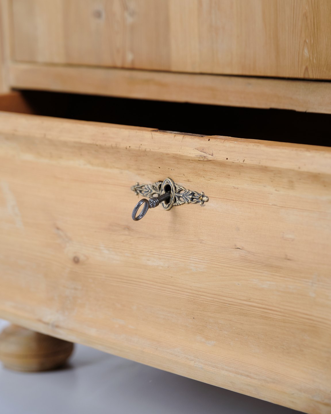 Karlekammerskab - Runde ben - Fyrretræ - front låge - skuffe - 1900 tallet