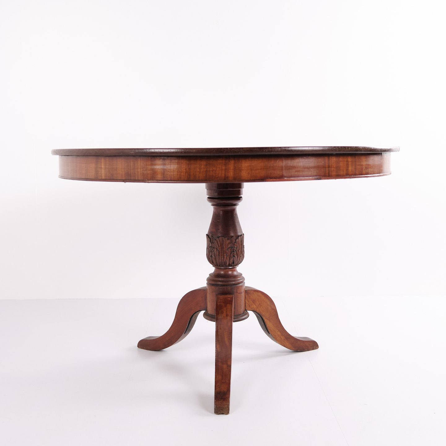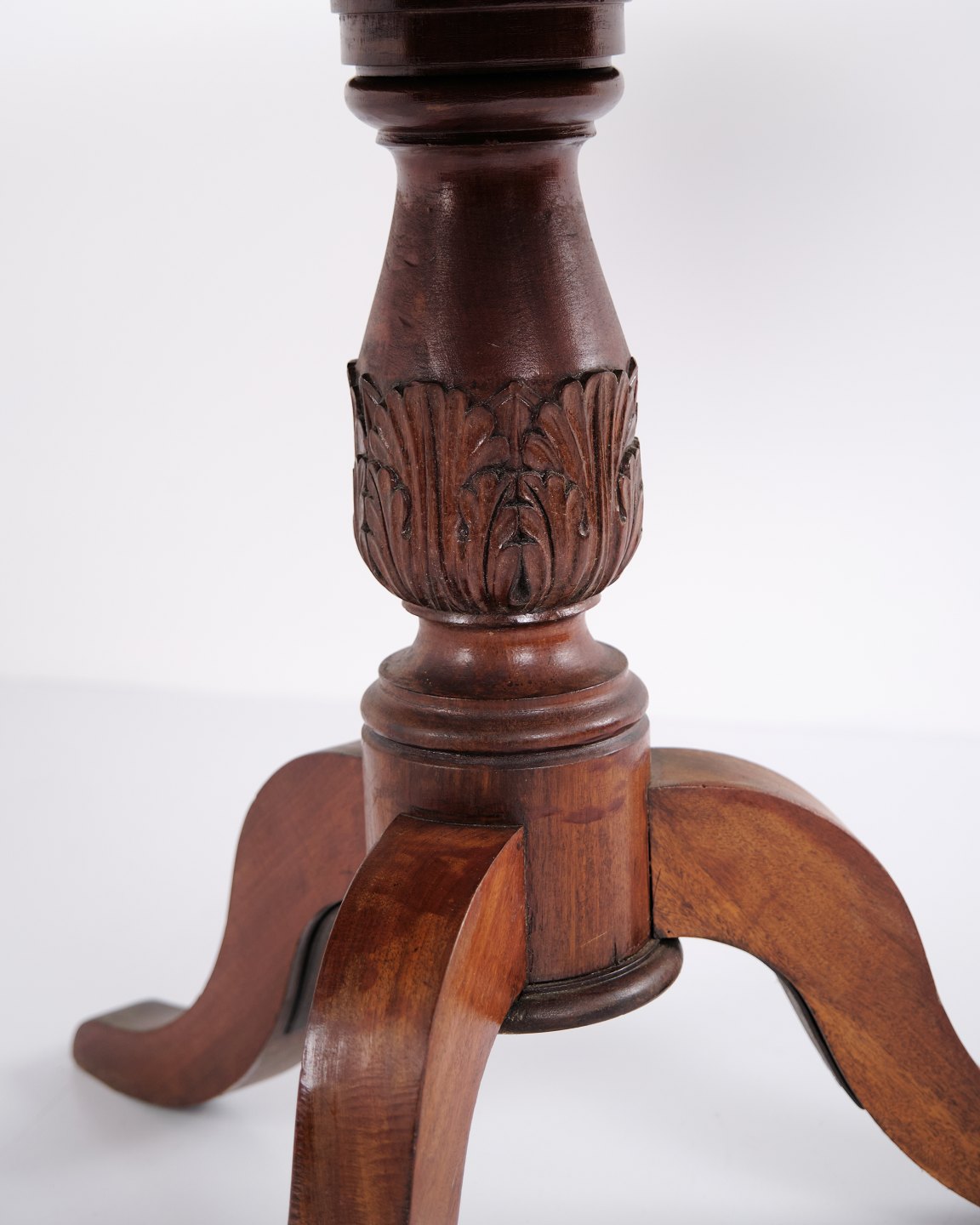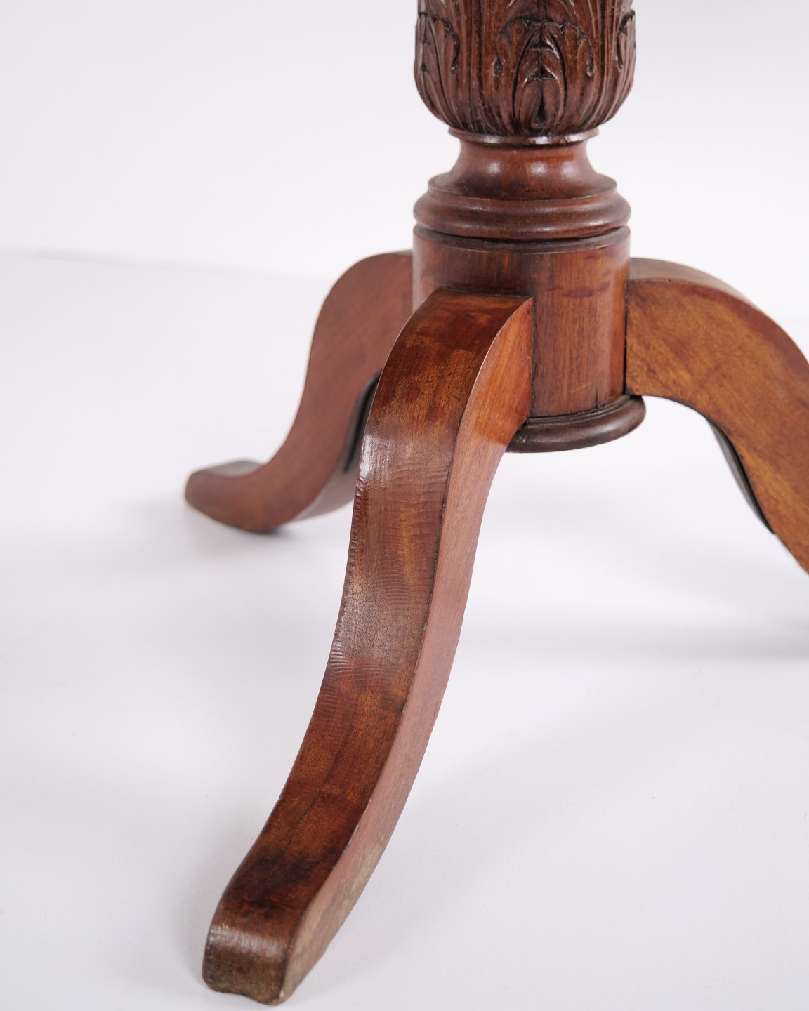 Entré- eller lobbybord fra 1800-tallet, udført i mahogni som klassisk søjlebord med rund bordplade. Et dekorativt og tidskarakteristisk møbel, velegnet til entré, hall eller stue. Massivt træ og elegant formgivning.