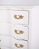 Antik barok kommode fra 1760’erne, hvidmalet med messinggreb. Fire skuffer og markant barokt formsprog. Historisk og dekorativt møbel.