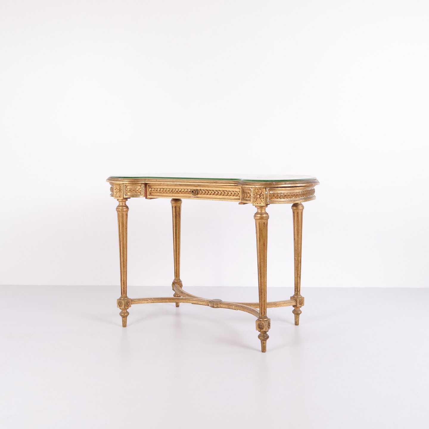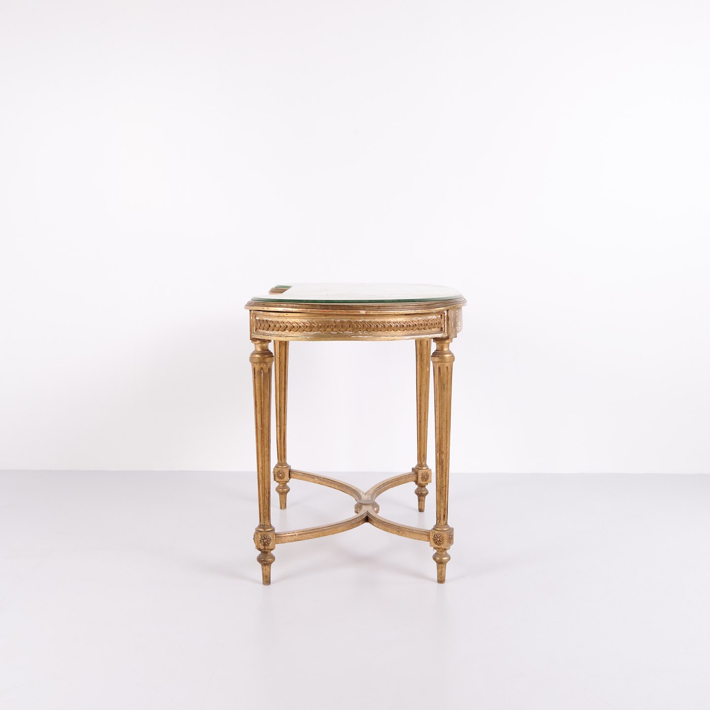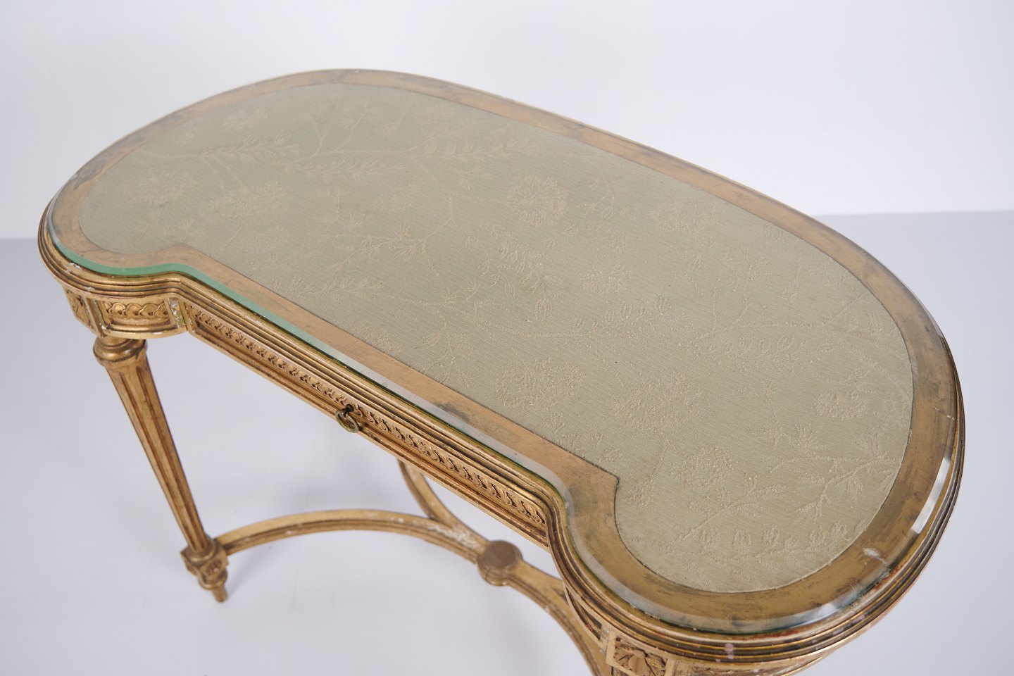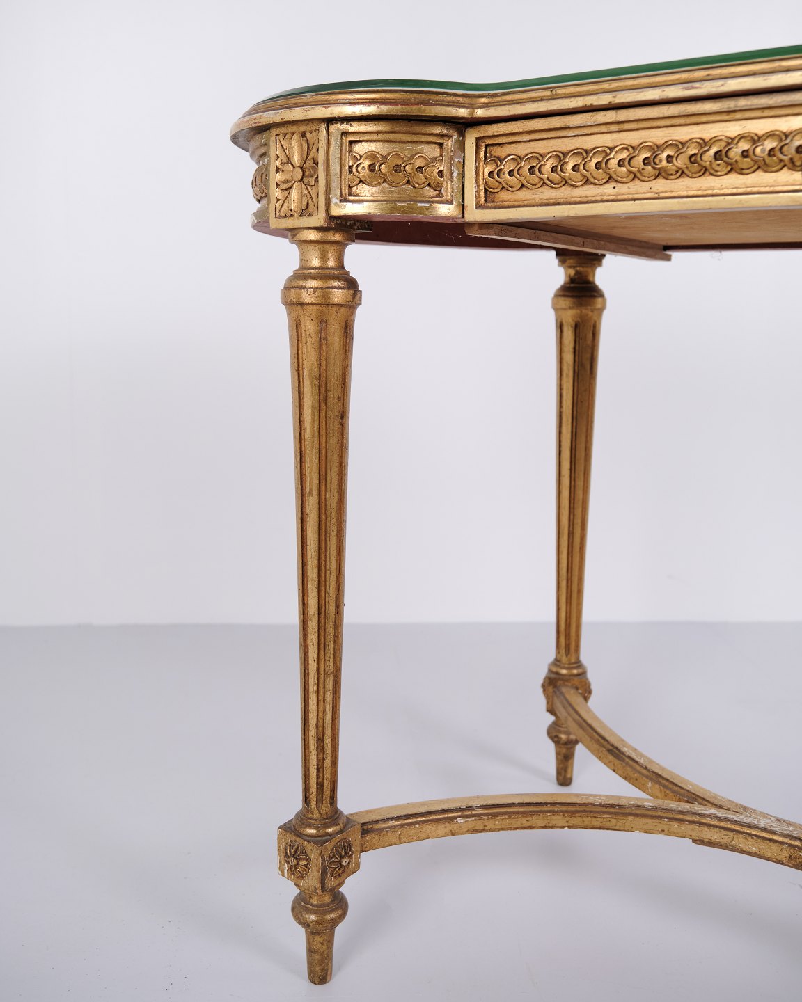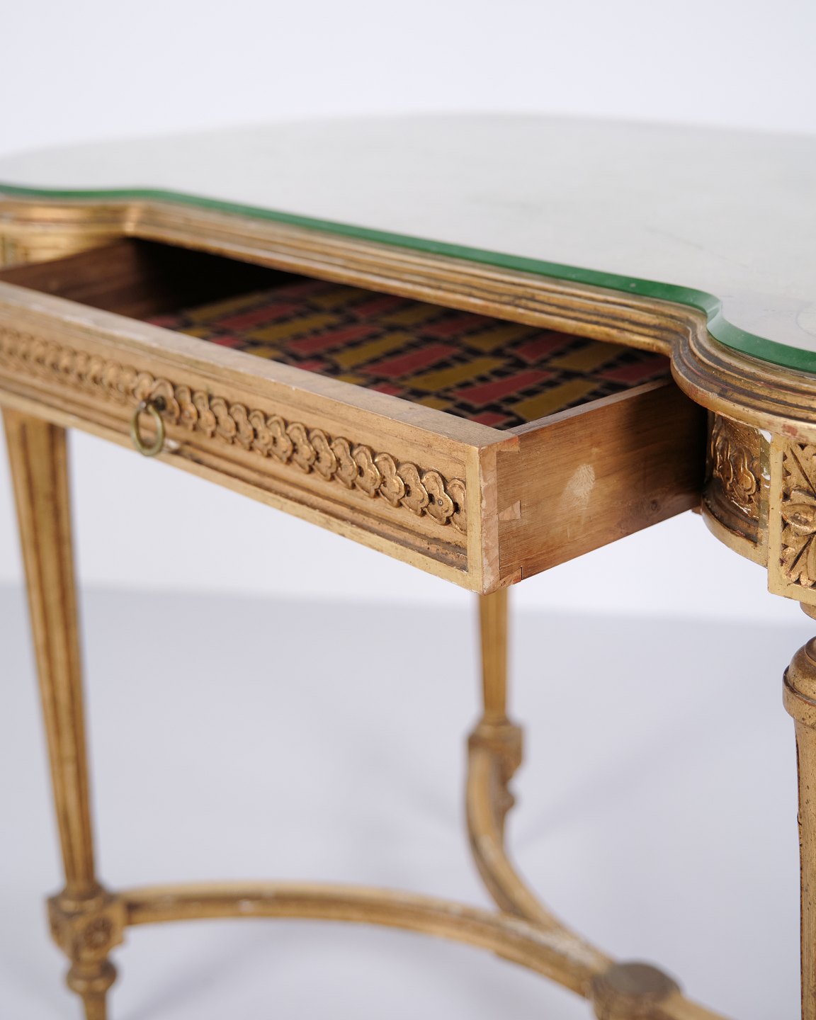 Antikt Skrivebord Med Glasbordplade & Skuffe – Gustaviansk/Louis XVI-stil – Forgyldt Træ – År 1850erne