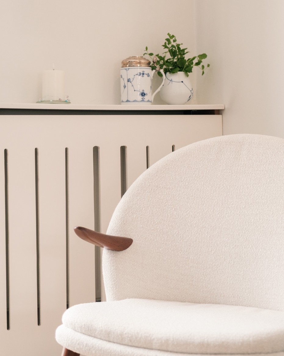 A natural focal point in one of the rooms is the iconic chair by Kurt Østervig. With its organic shapes and uncompromising craftsmanship, it functions both as a practical piece of furniture and an aesthetic statement - a design icon that elevates the room without dominating it.
