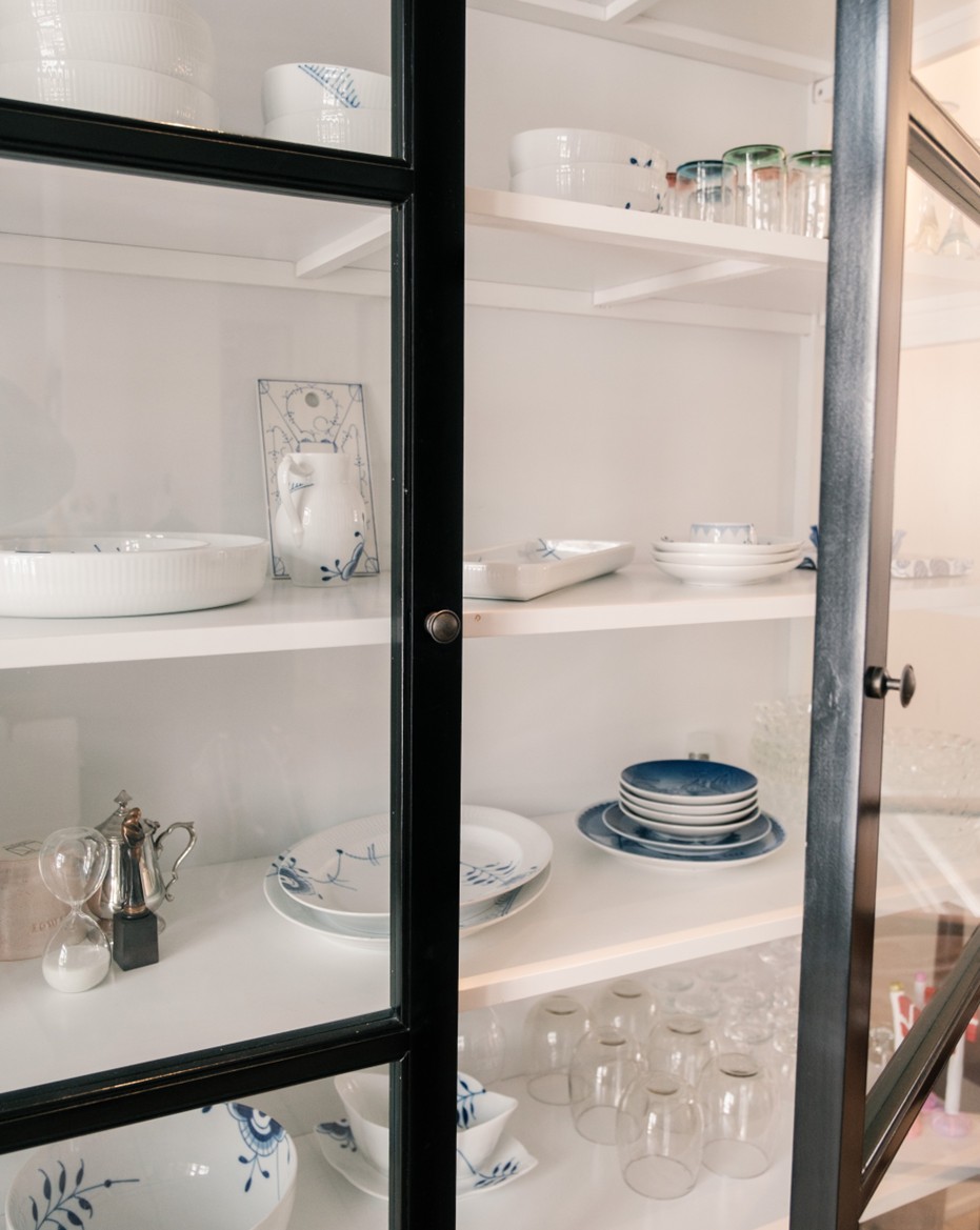Throughout the home you will also find Royal Copenhagen porcelain, adding lightness and elegance. The classic patterns and fine details tie the interior together and bring a touch of tradition into the modern Nordic expression.