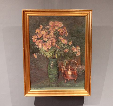 Oil painting on canvas with motif of horses with carriage signed ÅS. Painted by Aage Strand, painter from 28/6-1910. The painting was on the artist's subsequent exhibition in 1942 to 54 at Charlottenborg.