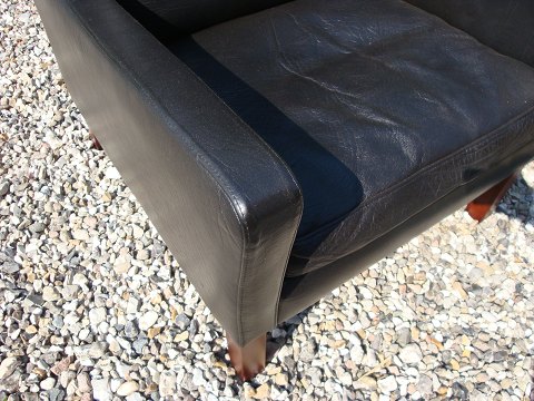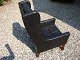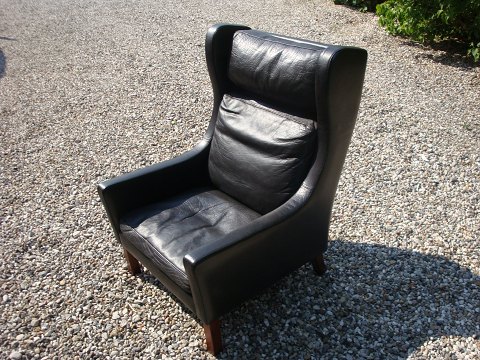 Recliner / wing chair in black leather Danish design from the 1960s stands as a new 5000 m2 showroom