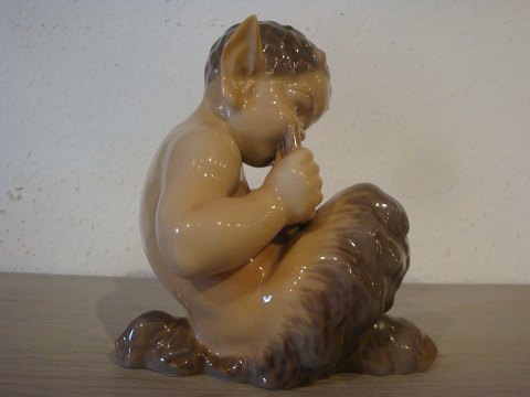 SolgtKgl. Dansk porcelænsfigur, Faun med panfløjte. Højde 14 cm. I perfekt stand. Haves også i mørkere farve.
