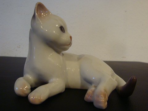 Kgl. B&G porcelænsfigur. nr. 2504. Liggende kat.