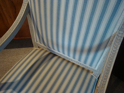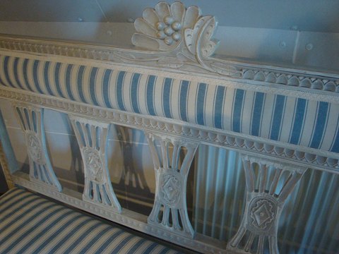 SolgtGråmalet og nypolstret Gustaviansk 2 personers sofa 56cm dyb, 97cm høj og 129 cm bred- 13800kr og stol 56 dyb*55 bred & 105cm høj - 6800kr
