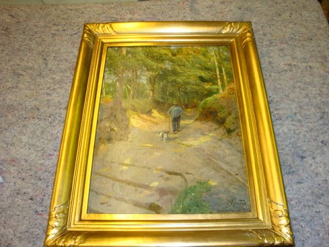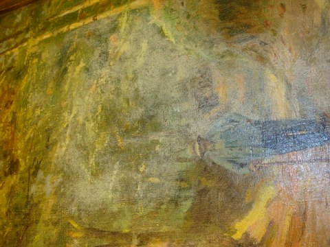 Dette maleri havde fået en dampskade. Vi har efterfølgende renset/ restaureret maleriet. Se før og efter foto.