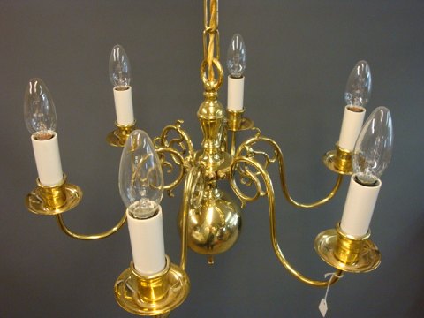 SoldChurch chandelier in brass from the Year 1910. The lamp has been renovated and in very good condition.