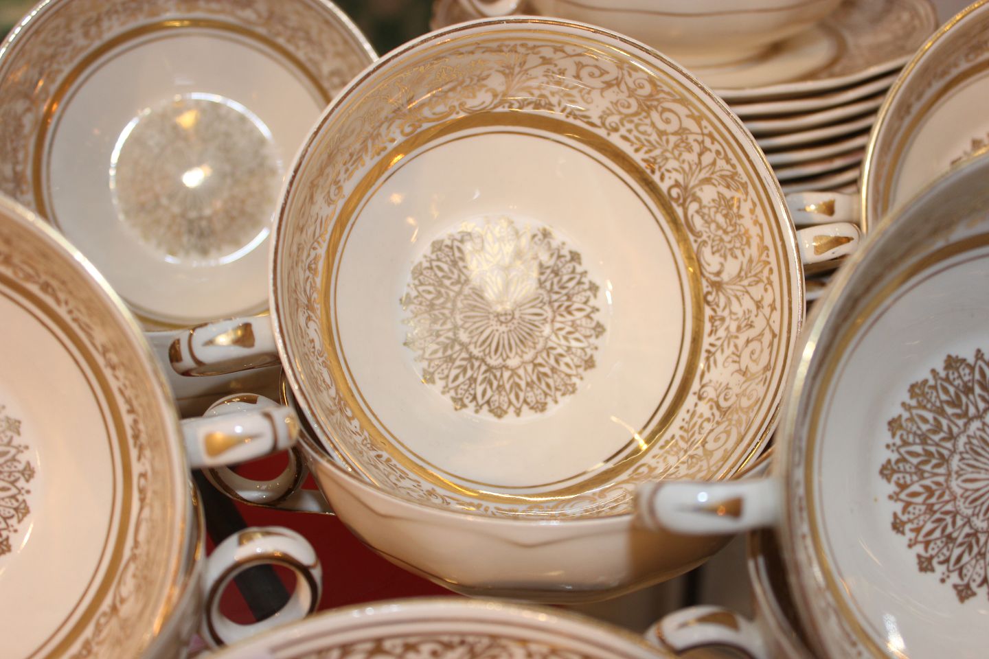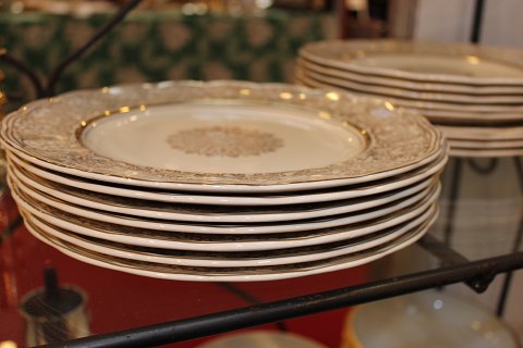 English dinner set consisting of boullionkopper and dinner plates.