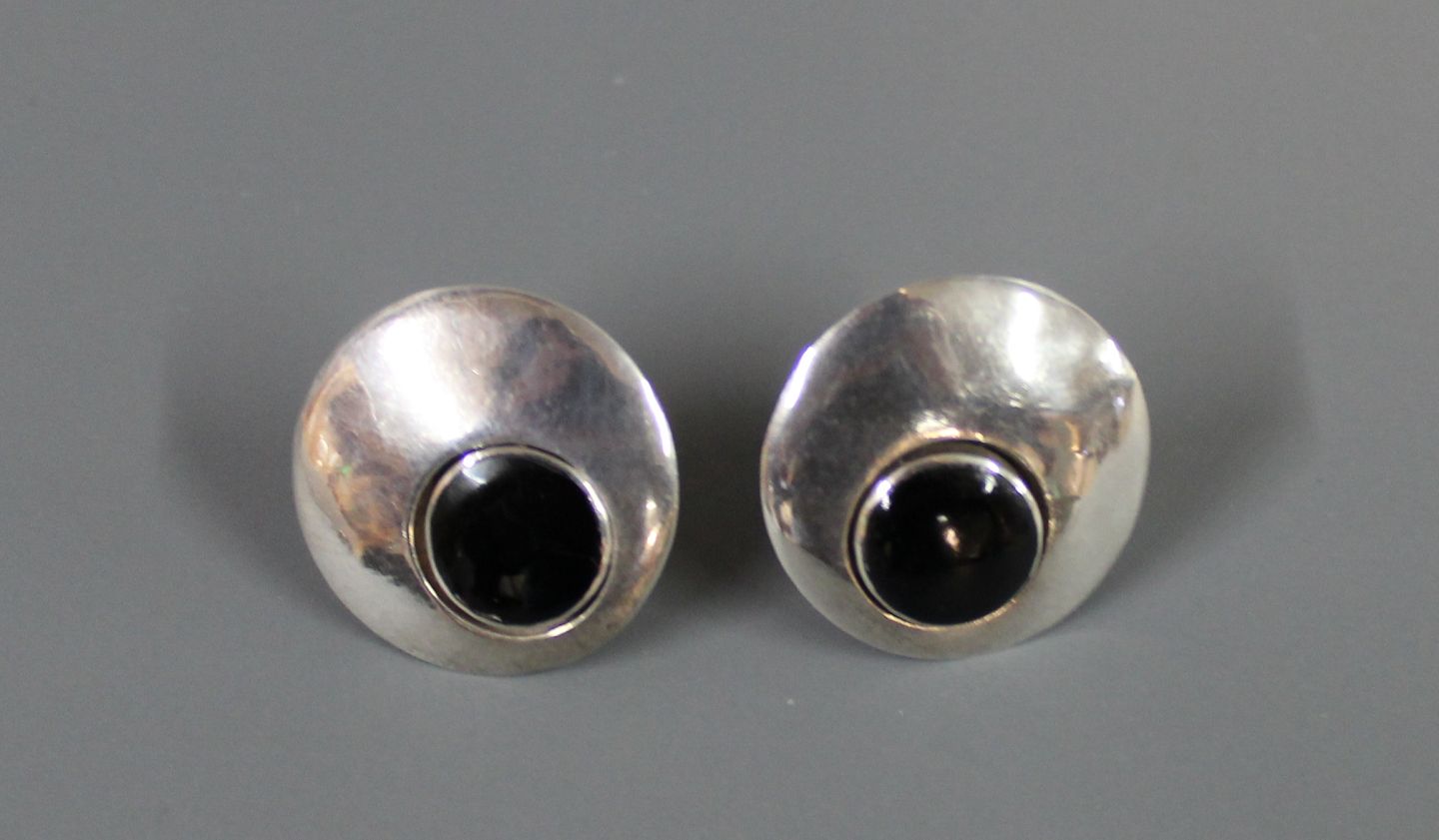 Sølv øreringe stemplet 925s H.S med sort onyx.