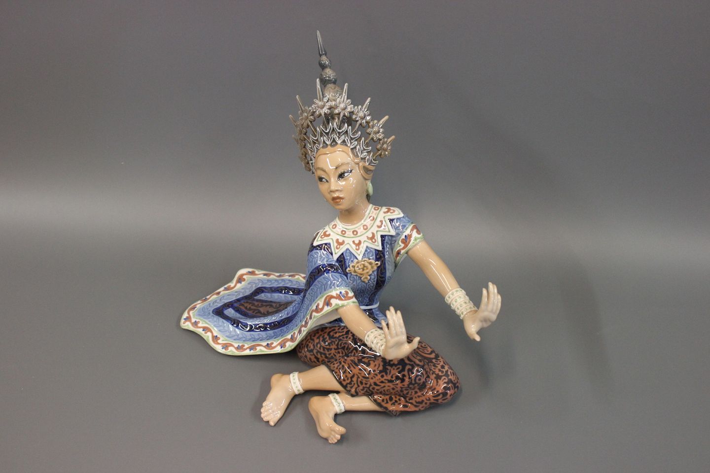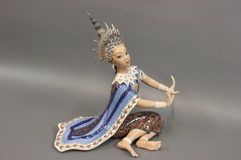 SolgtOrientalsk figur af Dahl Jensen, nr 1125. Siamesisk tempeldanserinde. Højde 28 cm.