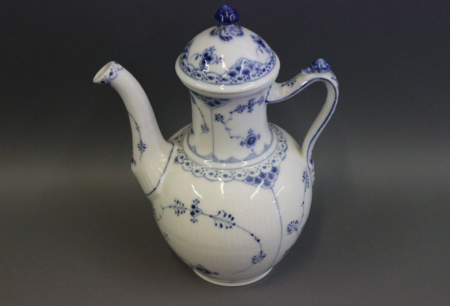 Royal Copenhagen musselmalet halv blonde kaffekande/vase nr. 519. Kaffekanden blev lavet mellem 1889-1922.