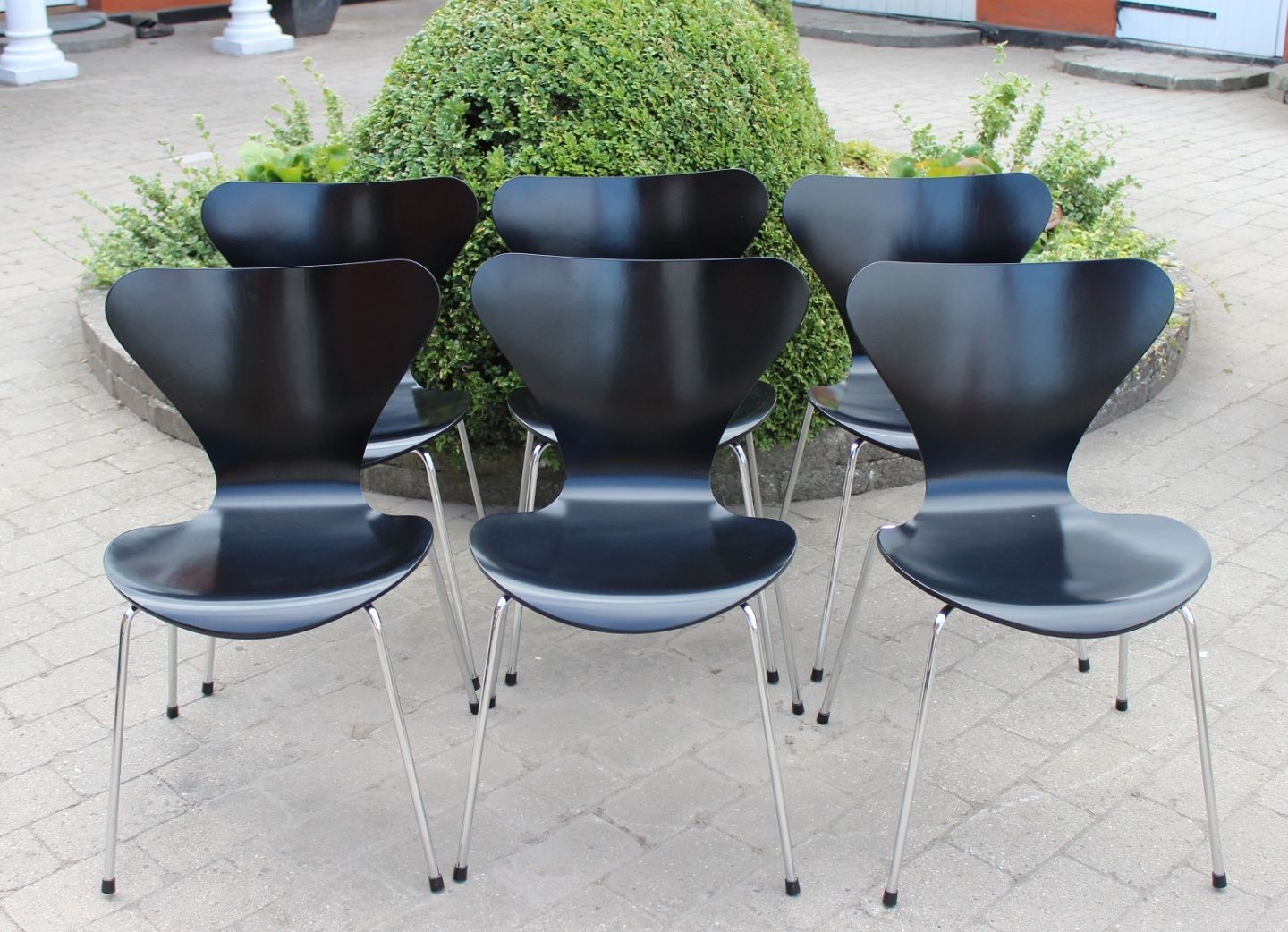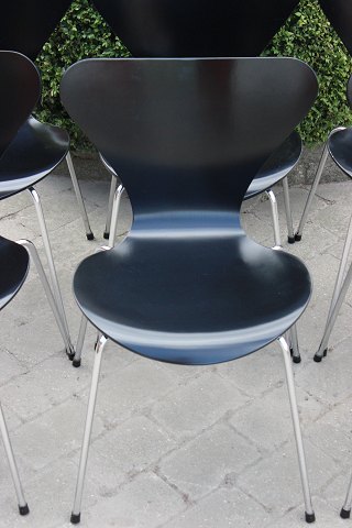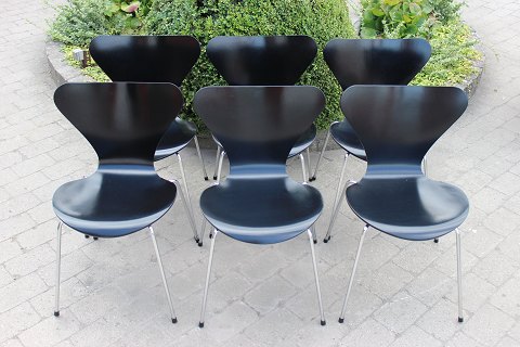 Solgt6 Sorte syver stole, model 3107, designet af Arne Jacobsen og produceret af Fritz Hansen. Designet i 1950erne.