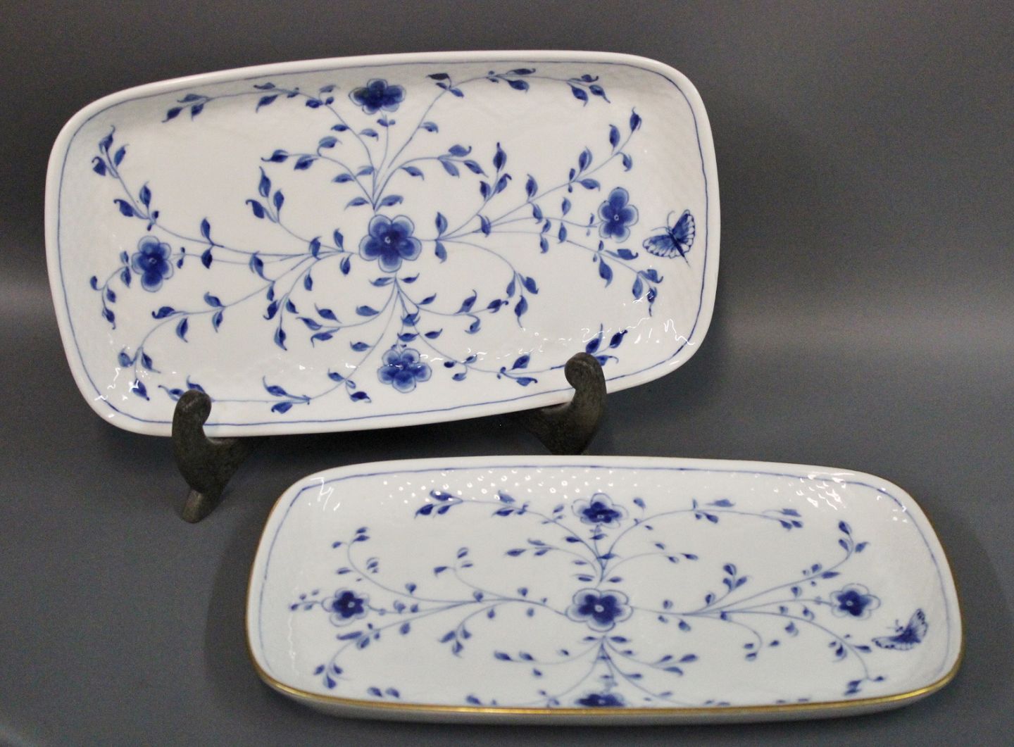 B&G porcelain butterfly. Rectangular dishes with and without gilt edge.