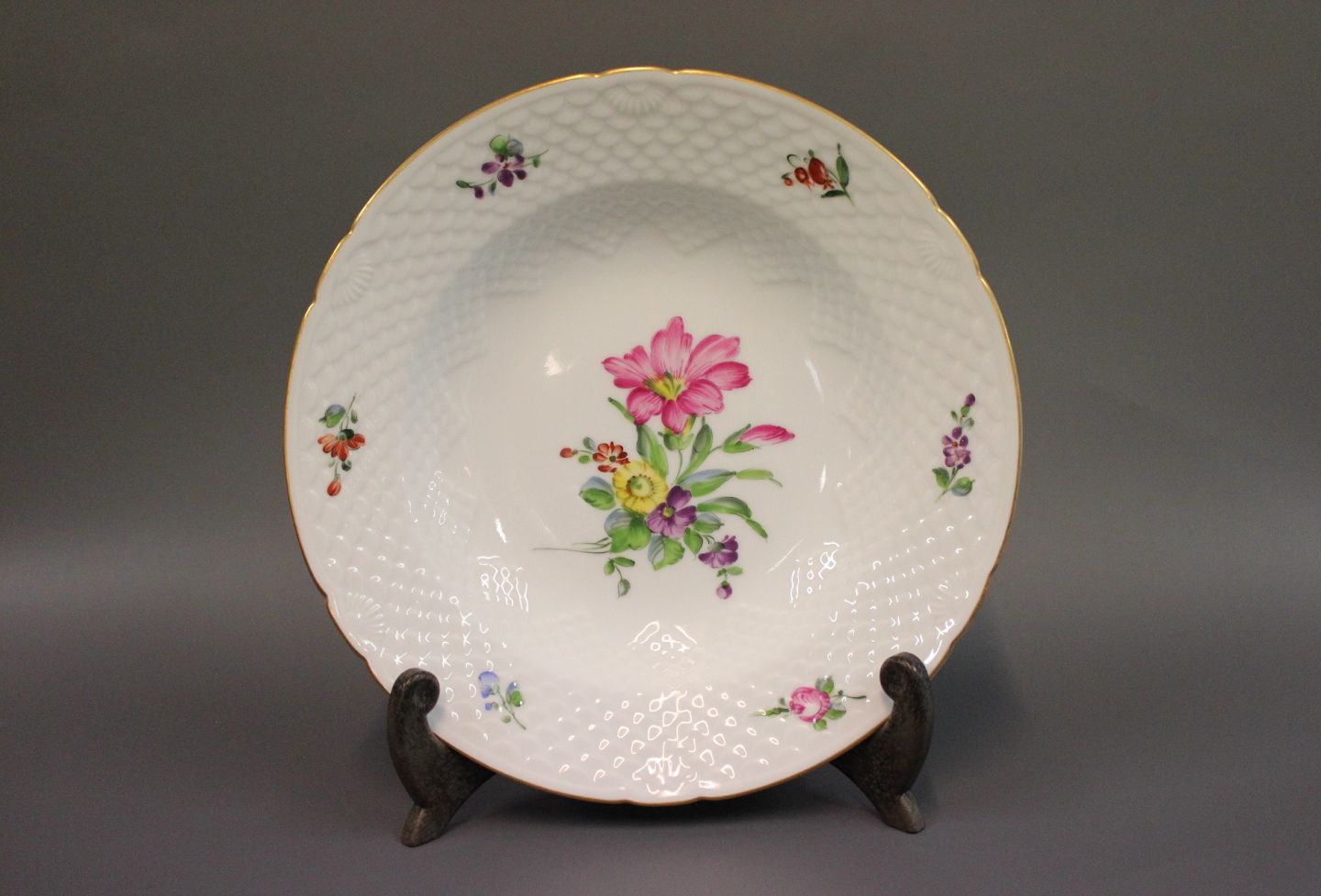 B&G saksisk blomst. Dyb tallerken som er lavet mellem 1915 og 1947 med nr. 10.