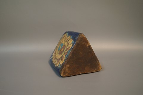SolgtTrekantet keramik vase med blomstermotiv fra 1940erne af ukendt keramiker.