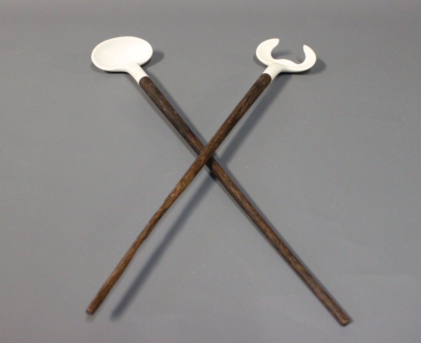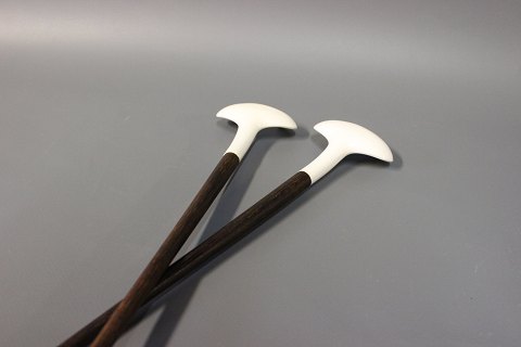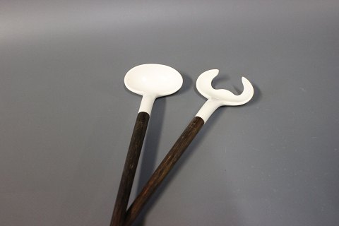 SolgtSalatsæt i palisander og porcelæn. Sættet er af dansk design fra 1960erne.