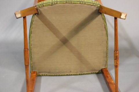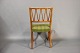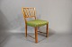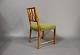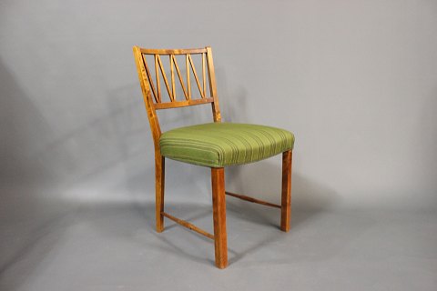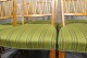 Hvert sæde er polstret med et smukt grønt stof, der komplimenterer det varme nøddetræ og giver en behagelig siddeoplevelse. Stolens ramme er solidt konstrueret af nøddetræ, hvilket sikrer holdbarhed og stabilitet.
