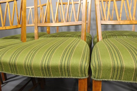 Et sæt af seks spisestole i nøddetræ, håndlavet af en dansk snedkermester i 1940'erne, er tilgængeligt til salg. Disse elegante stole er et smukt eksempel på dansk design fra denne æra og tilføjer en klassisk og tidløs charme til ethvert hjem.