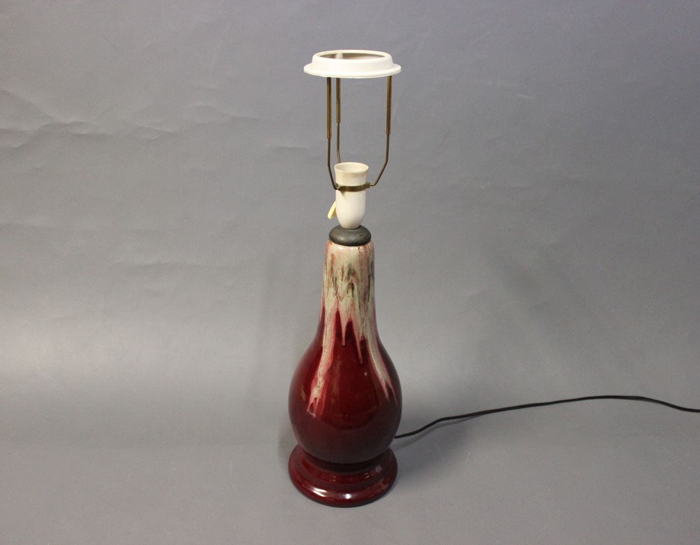 Bordlampe i mørkerød glasur fra Michael Andersens keramik fabrik på Bornholm. Ny lampeskærm kan tilkøbes for 300 kr.
