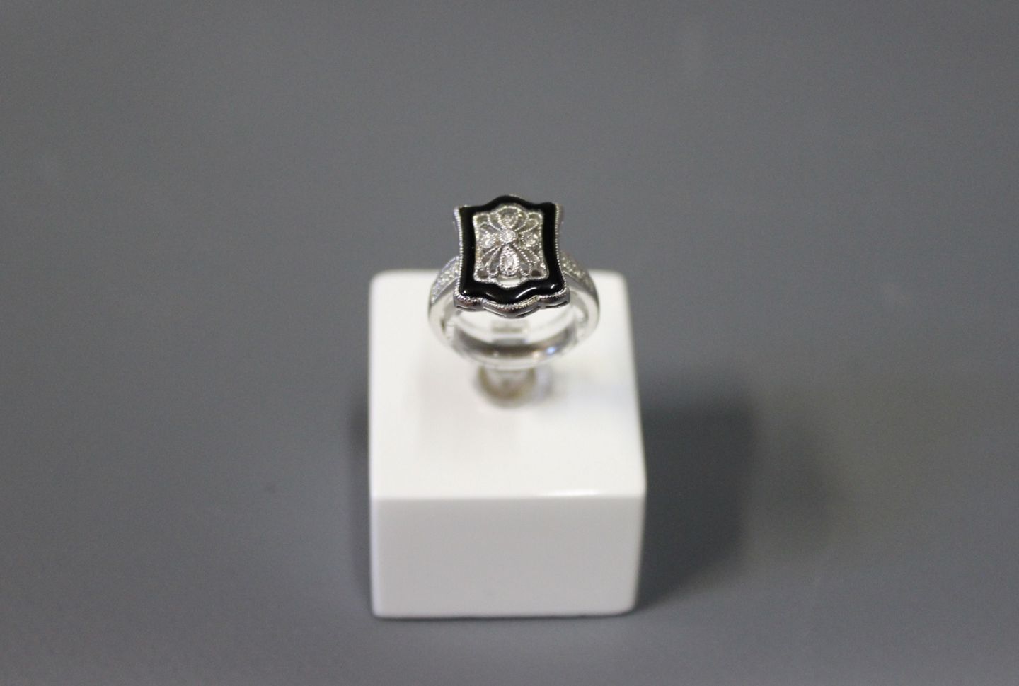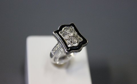 Ring i 14 kt. hvidguld med filigran og små diamanter.