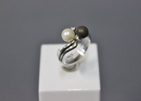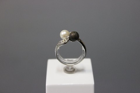 Ring i 14 kt. hvidguld med 2 kulturperler (0,2 cm).