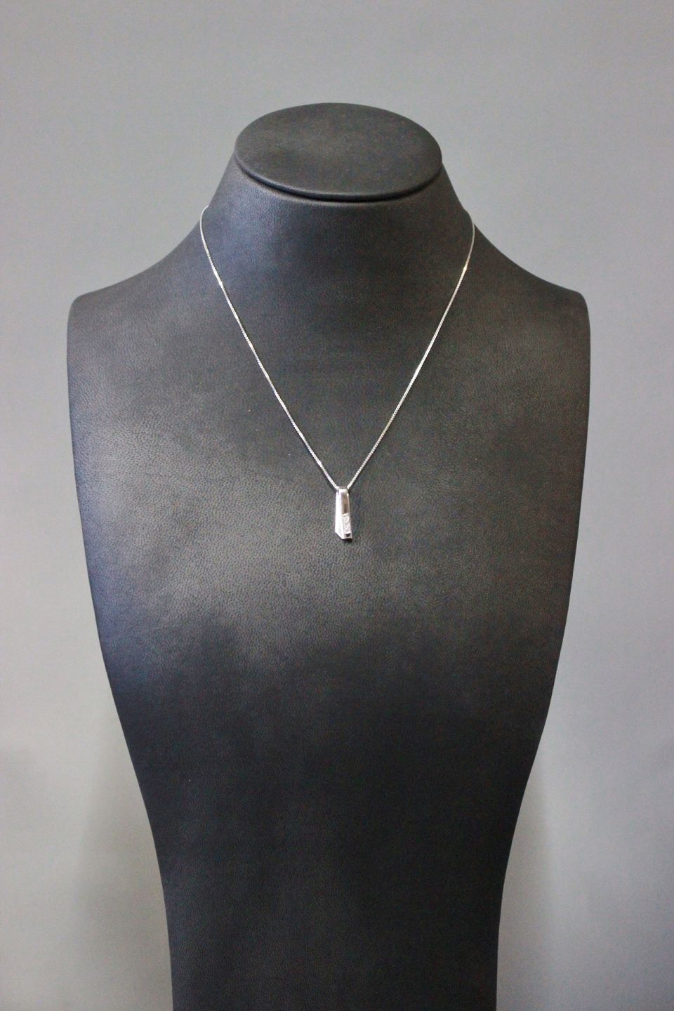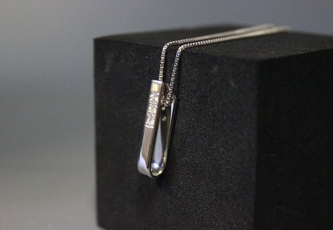 Halskæde i hvidguld med vedhæng med 3 brillanter.