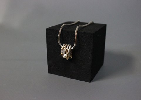 Halskæde i 925 sterling sølv samt vedhæng i sølv dekoreret med 14 kt. guld.