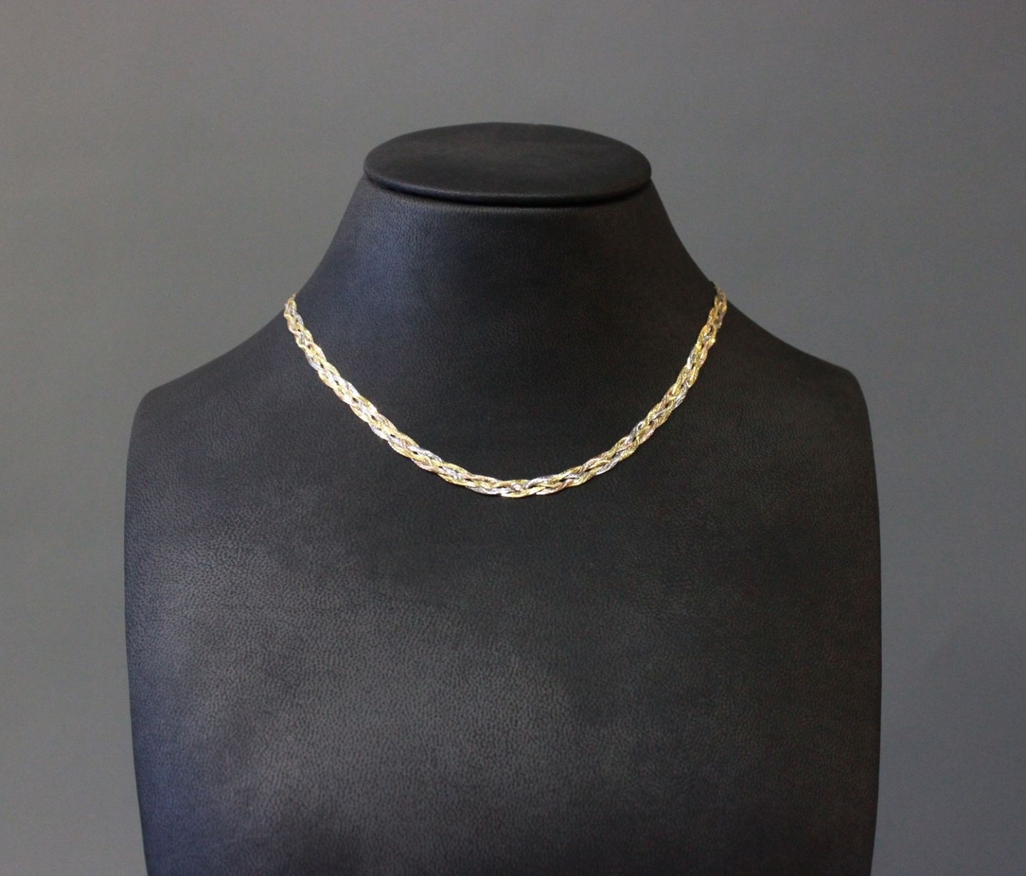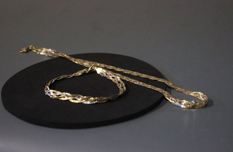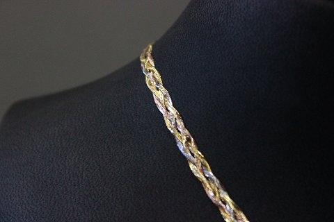 Beautiful necklace in 14 ct. redgold, whitegold and gold.
