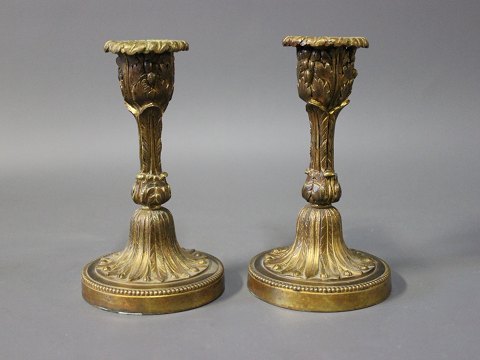 Et par Franske lyre bronze forgyldte stager fra ca. år 1880.