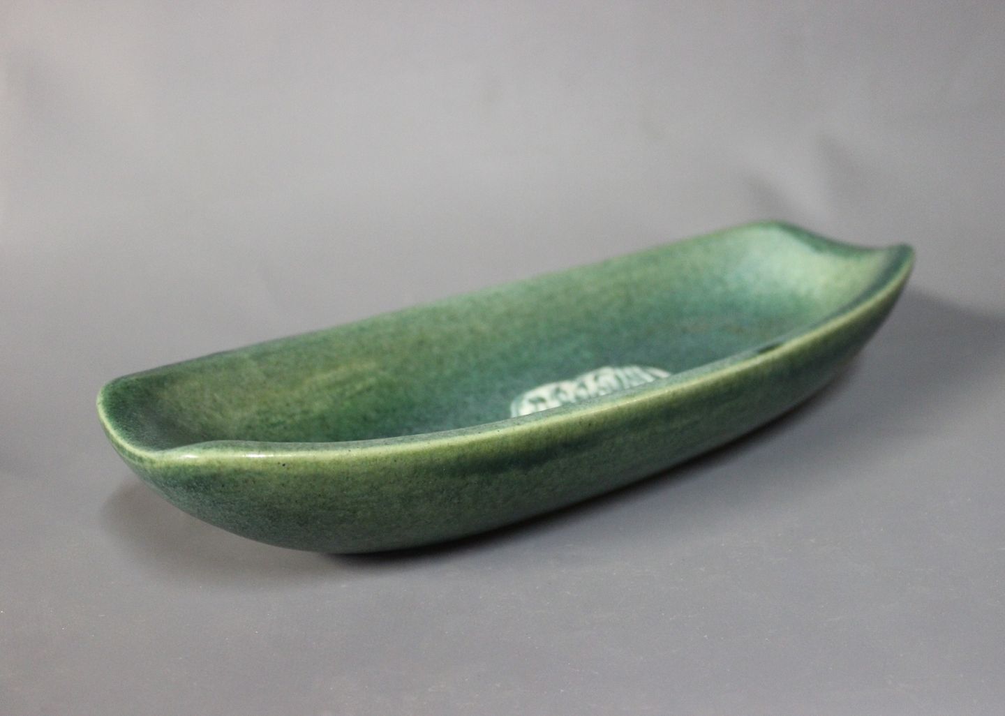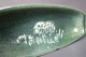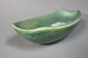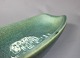 Aflangt mørkegrønt keramik fad fra Thorup.