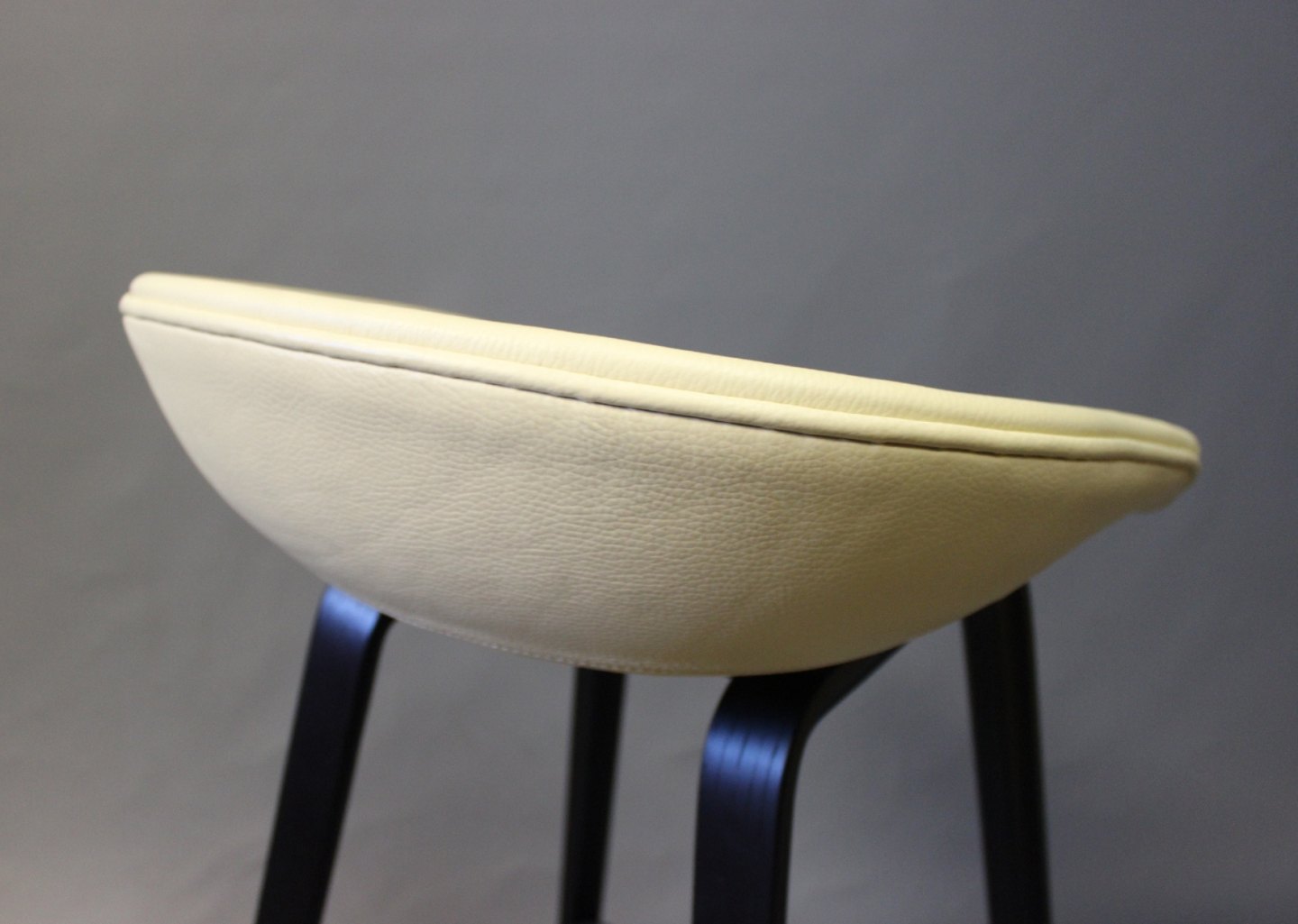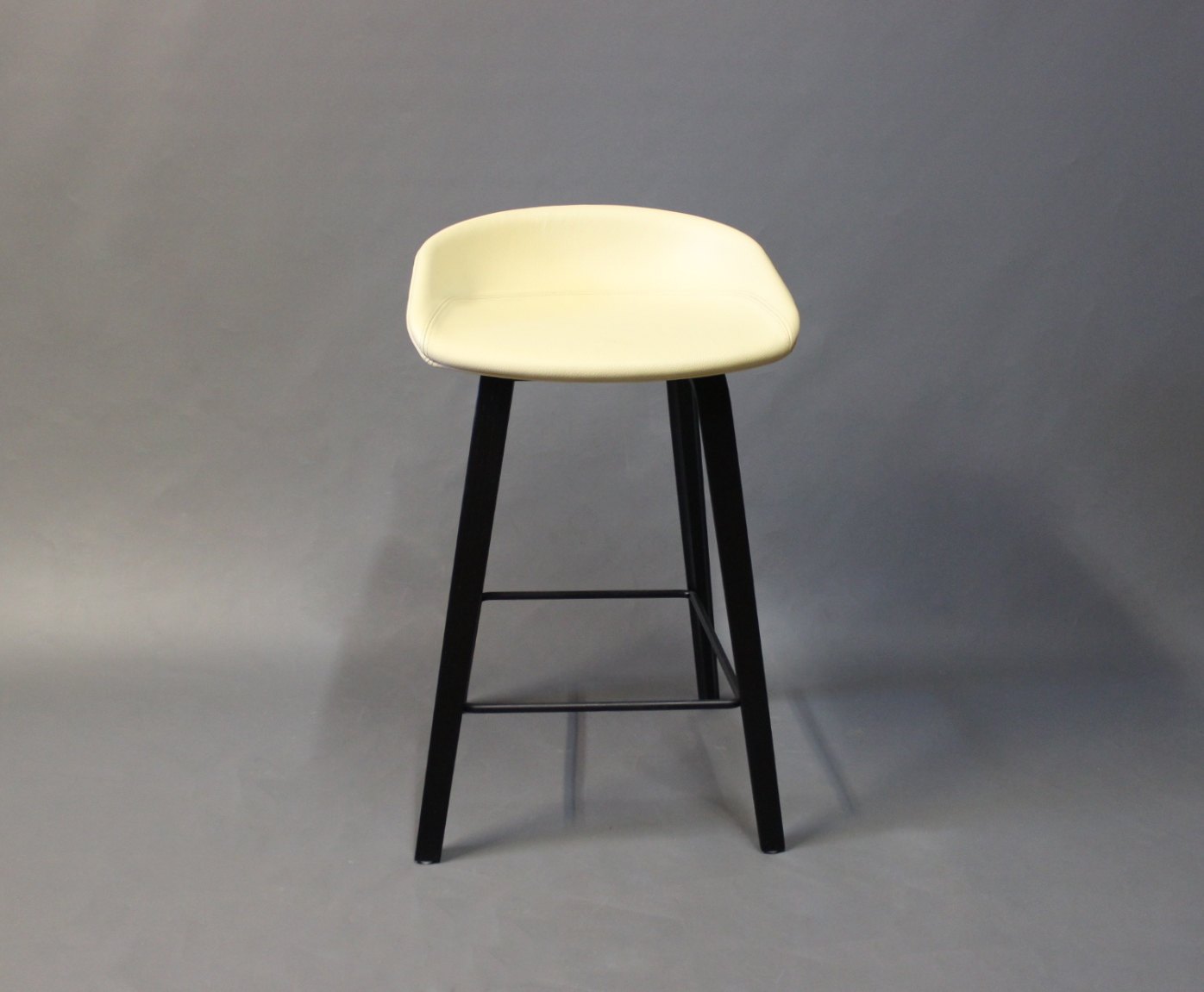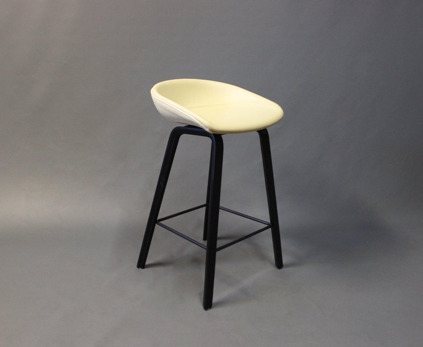 A pair of barstools "About a Stool" ASS32 designed by HAY in 2010. These are newly upholstered with Classic yellow leather and legs of Black polished Wood. We have 1 left.