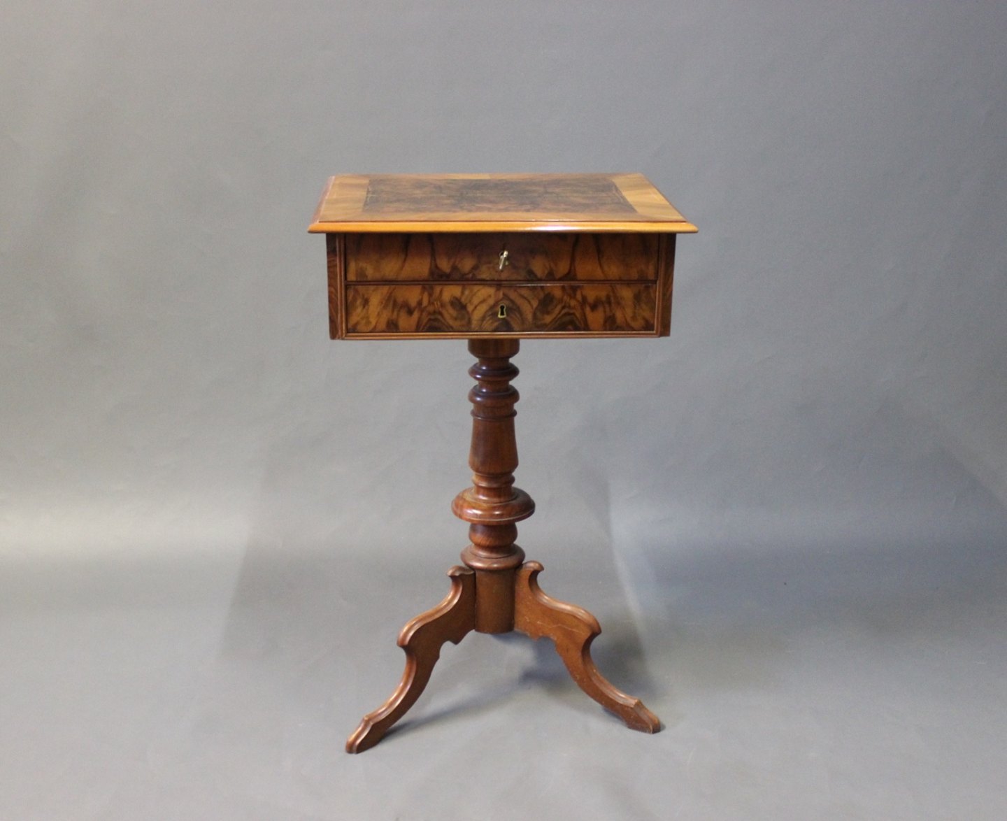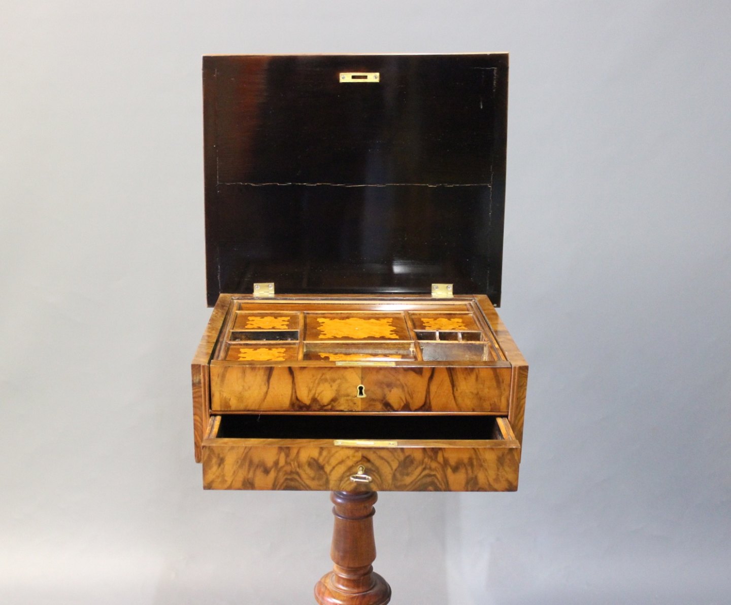 SolgtAntikt sybord i håndpoleret valnød med indlagt træ fra 1860.