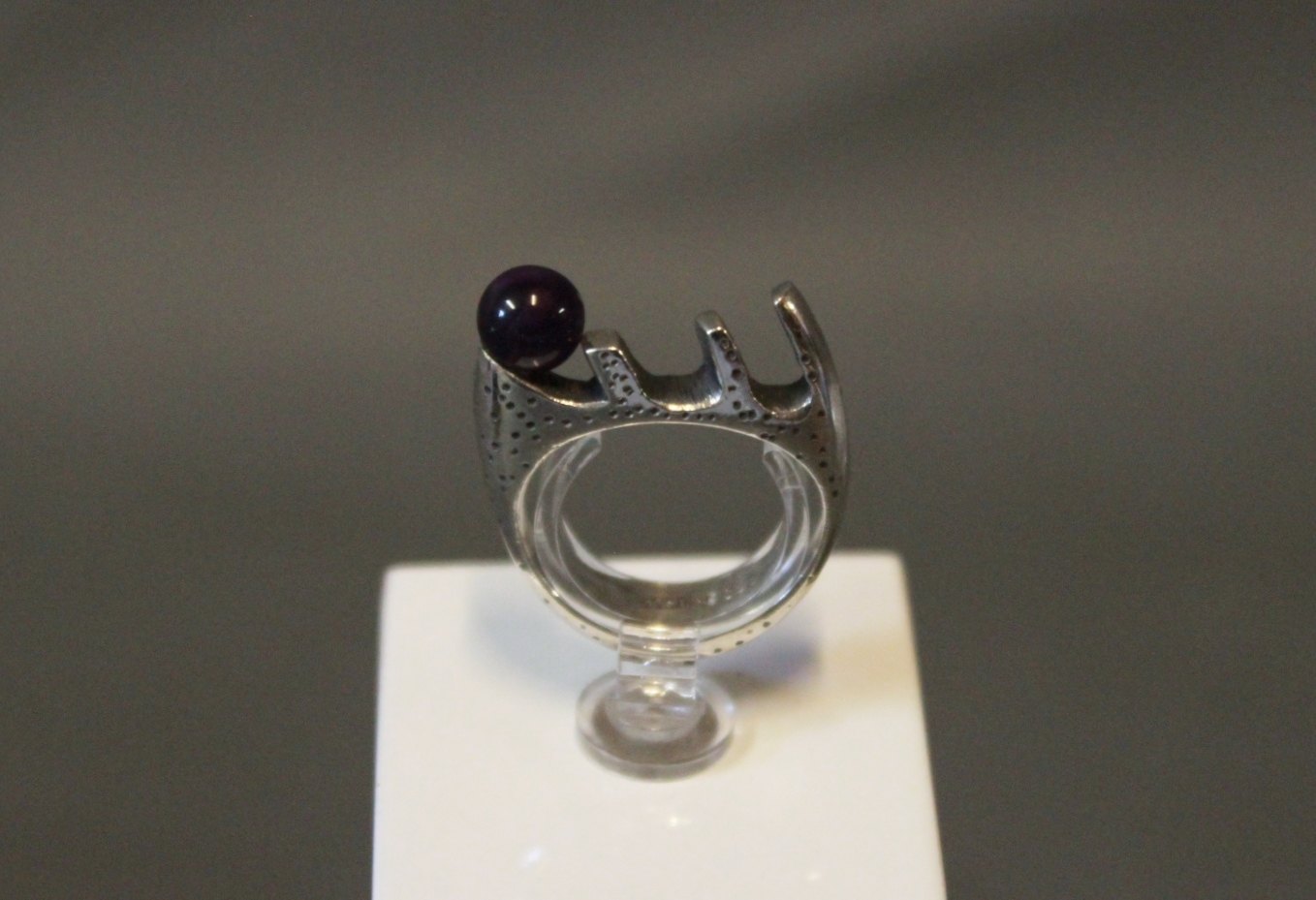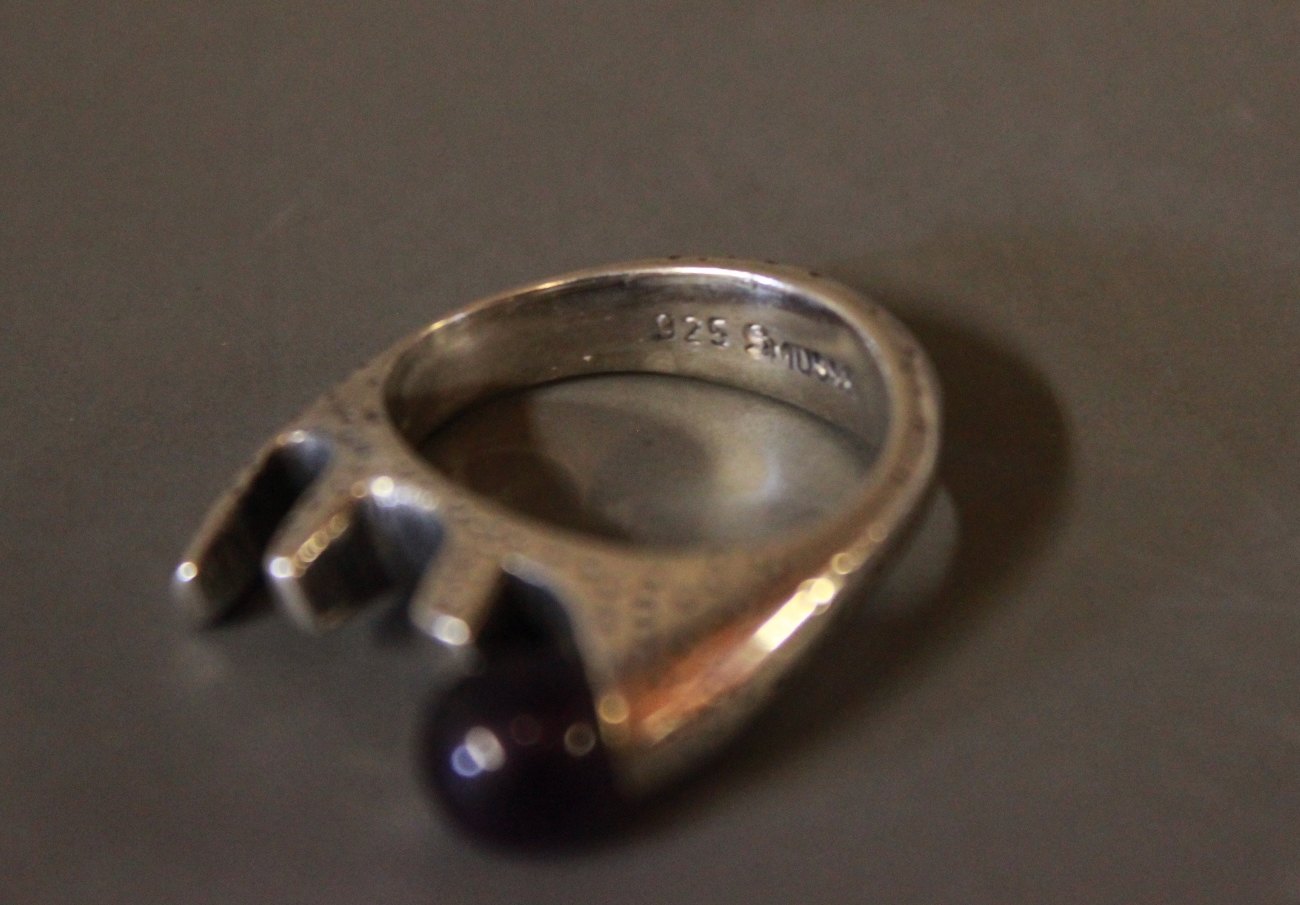 Ring i 925 sterling sølv med lilla sten stemplet Musse.