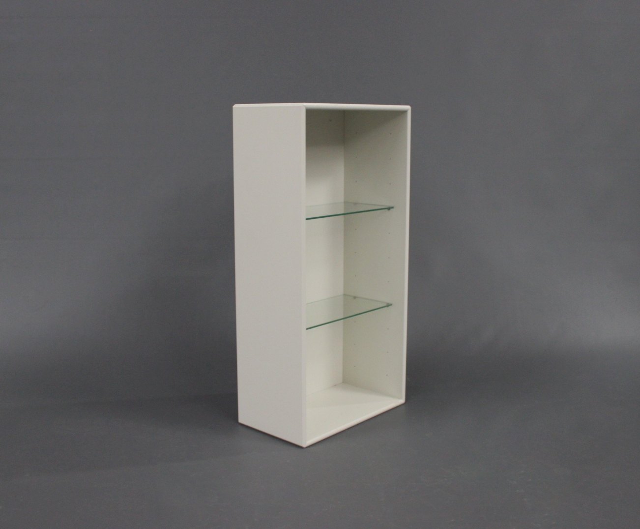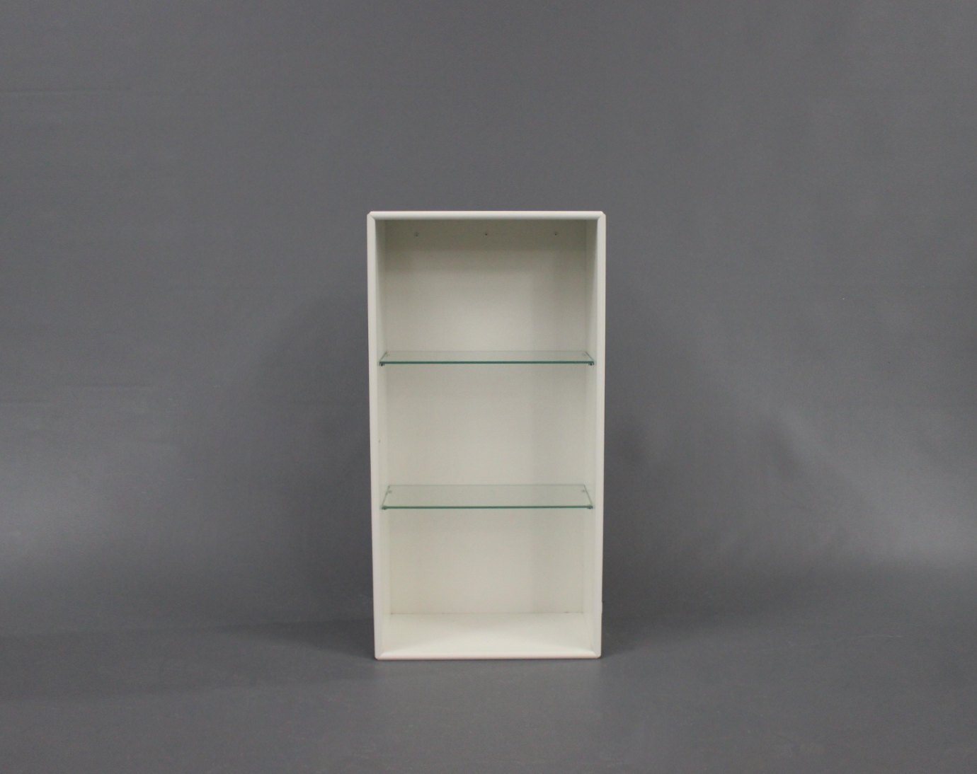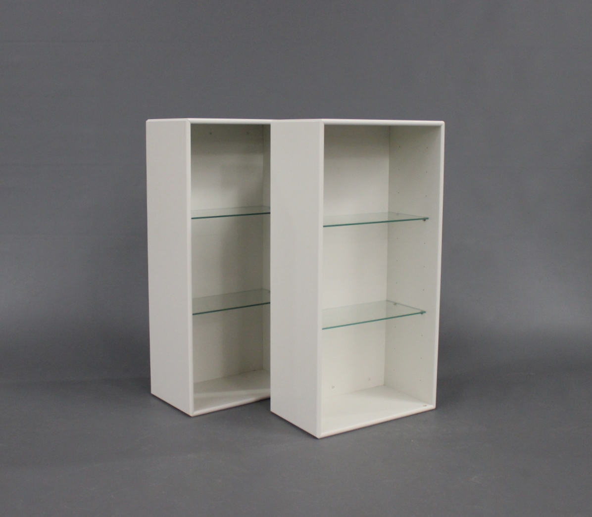 Et par hvide Montana reoler med glashylder. Reolerne sælges både som par men også enkeltvis. Vi har mange forskellige reoler af Montana på lager, kontakt for nærmere info.