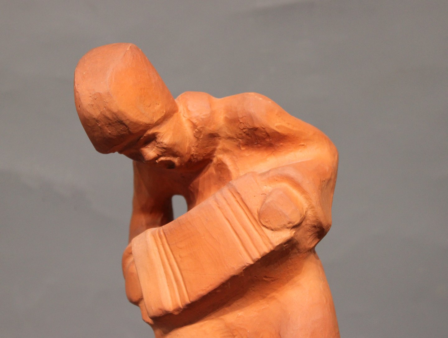 Large wooden figure of a man with an accordion by an unknown artist from around the 1960s.
