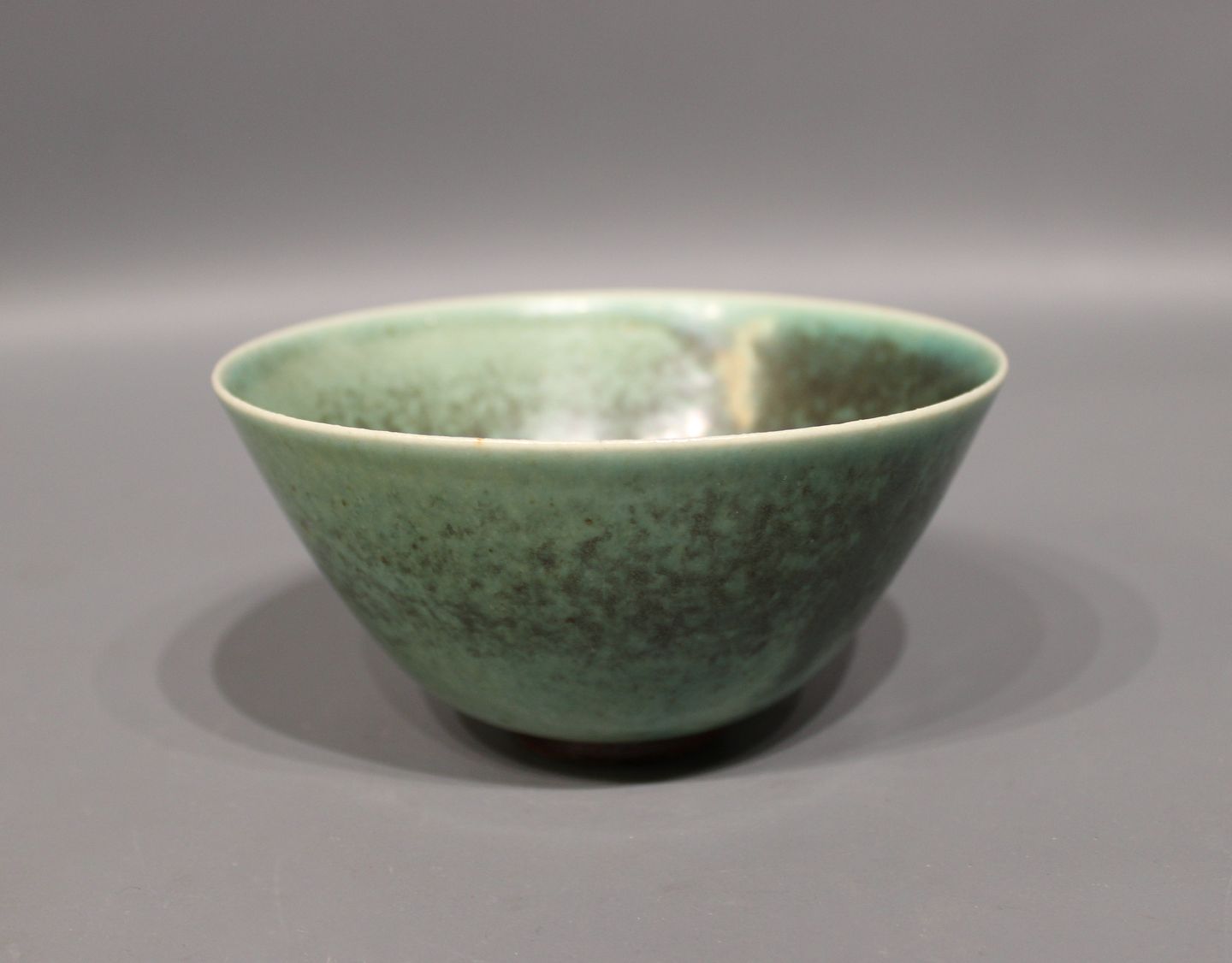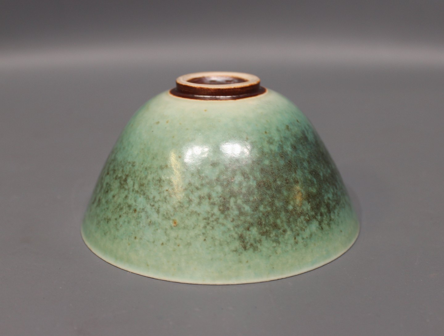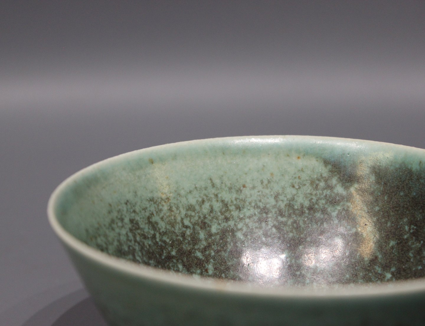 SolgtKeramik skål i lysegrøn/turkis glasur, nr.: 3 af Saxbo. Skålen er i flot brugt stand.