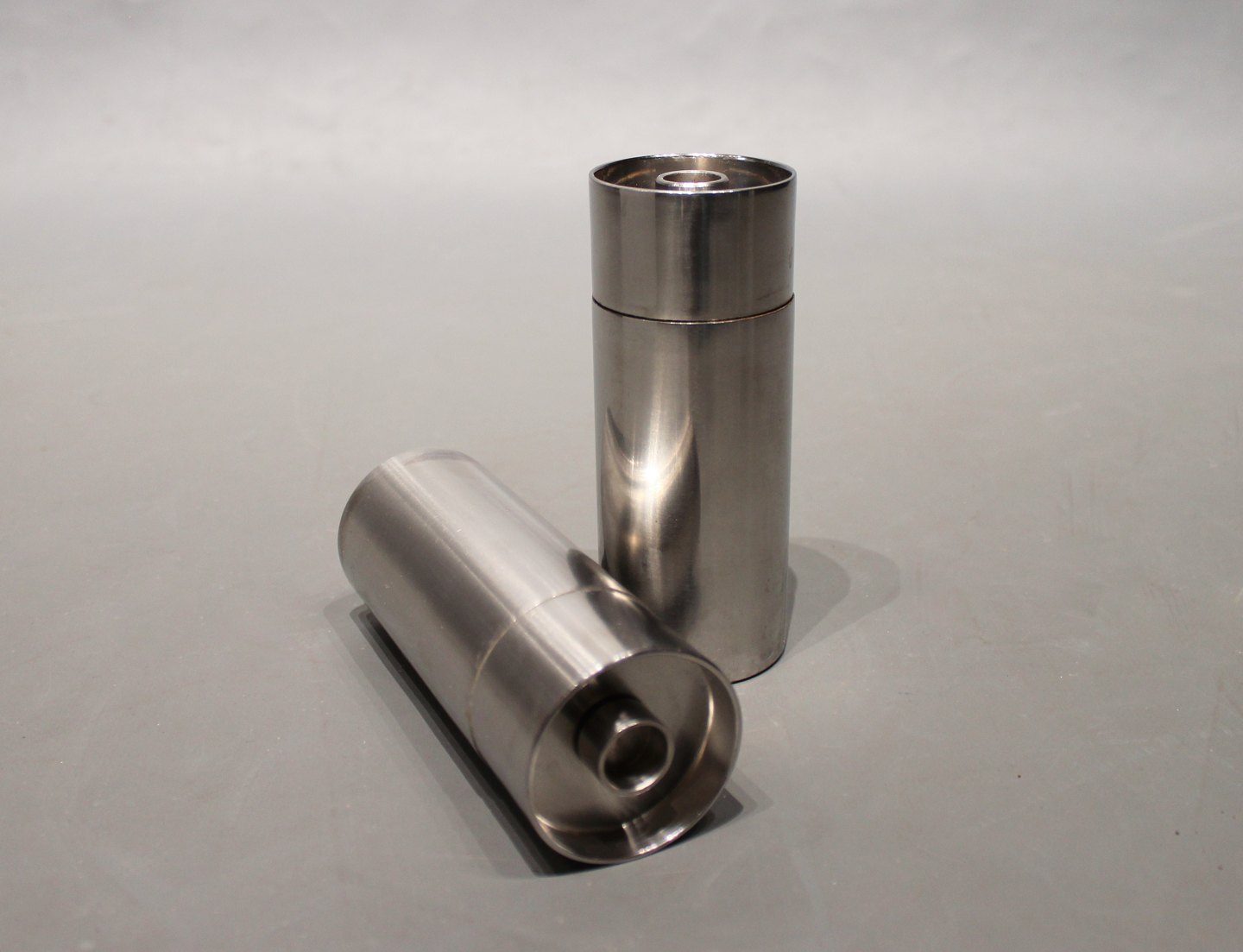 Se prisen i varebeskrivelsenSalt og peberbøsse samt salt og peberkværn fra serien Cylinda Line designed af Arne Jacobsen for Stelton.